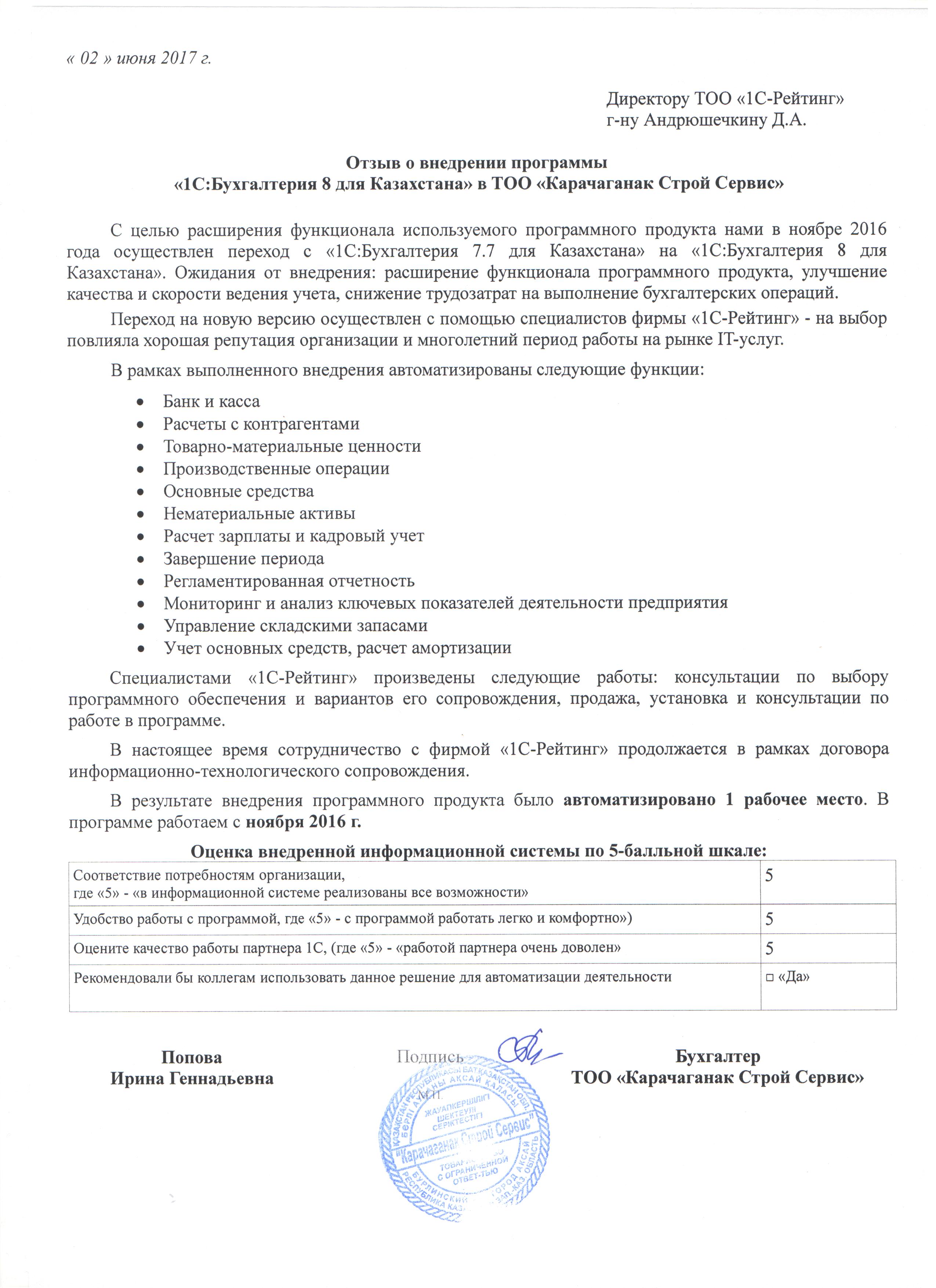| Внедренное типовое решение: | 1С:Бухгалтерия 8 для Казахстана |