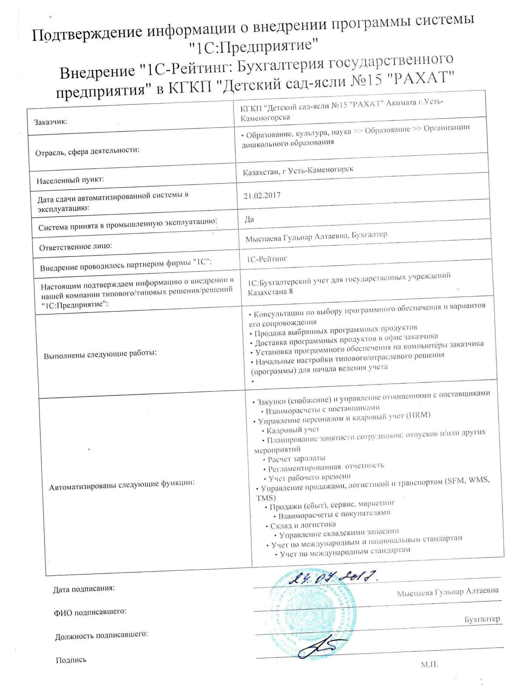 | Внедренное отраслевое решение: | 1С-Рейтинг: Бухгалтерия государственного предприятия |