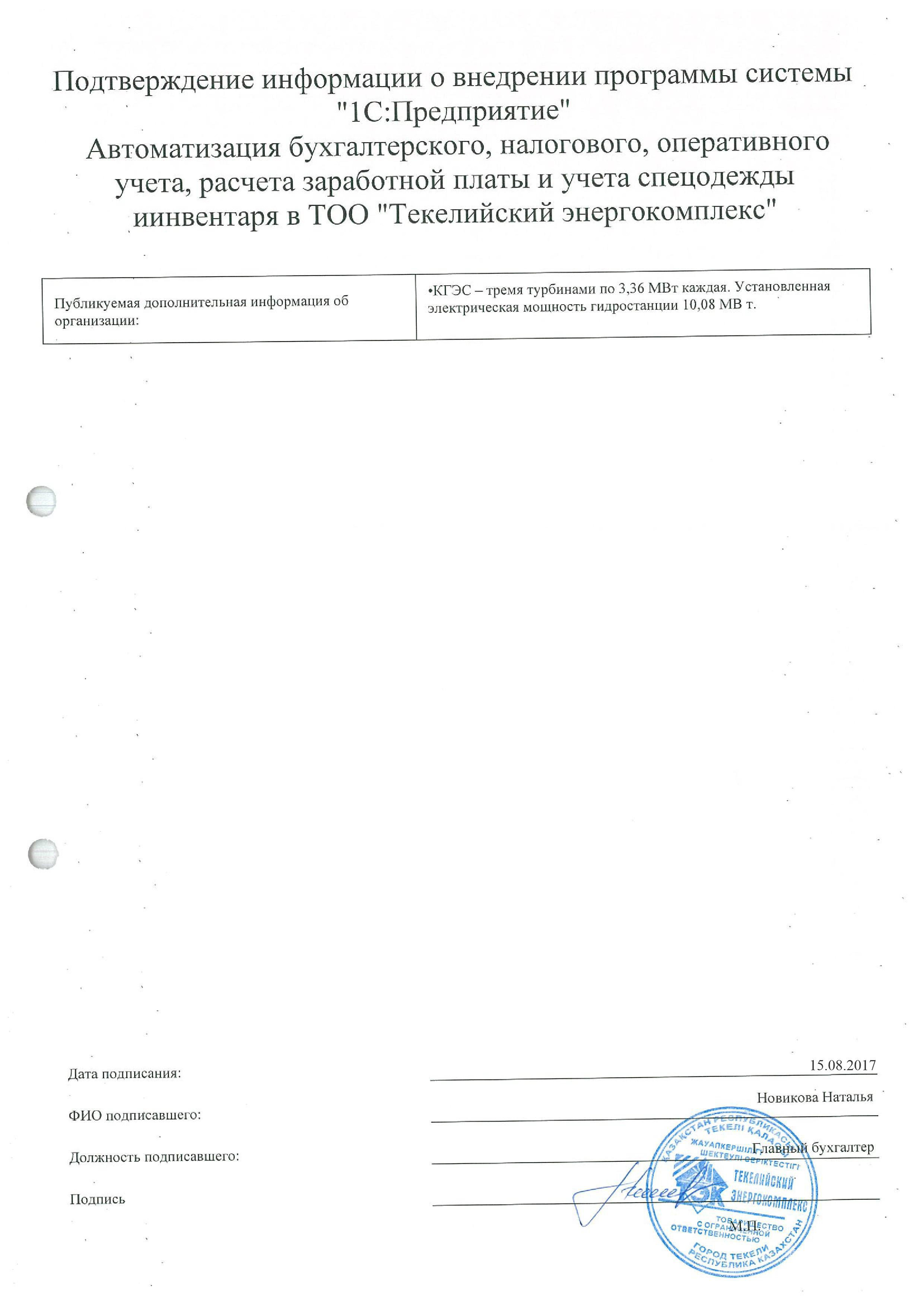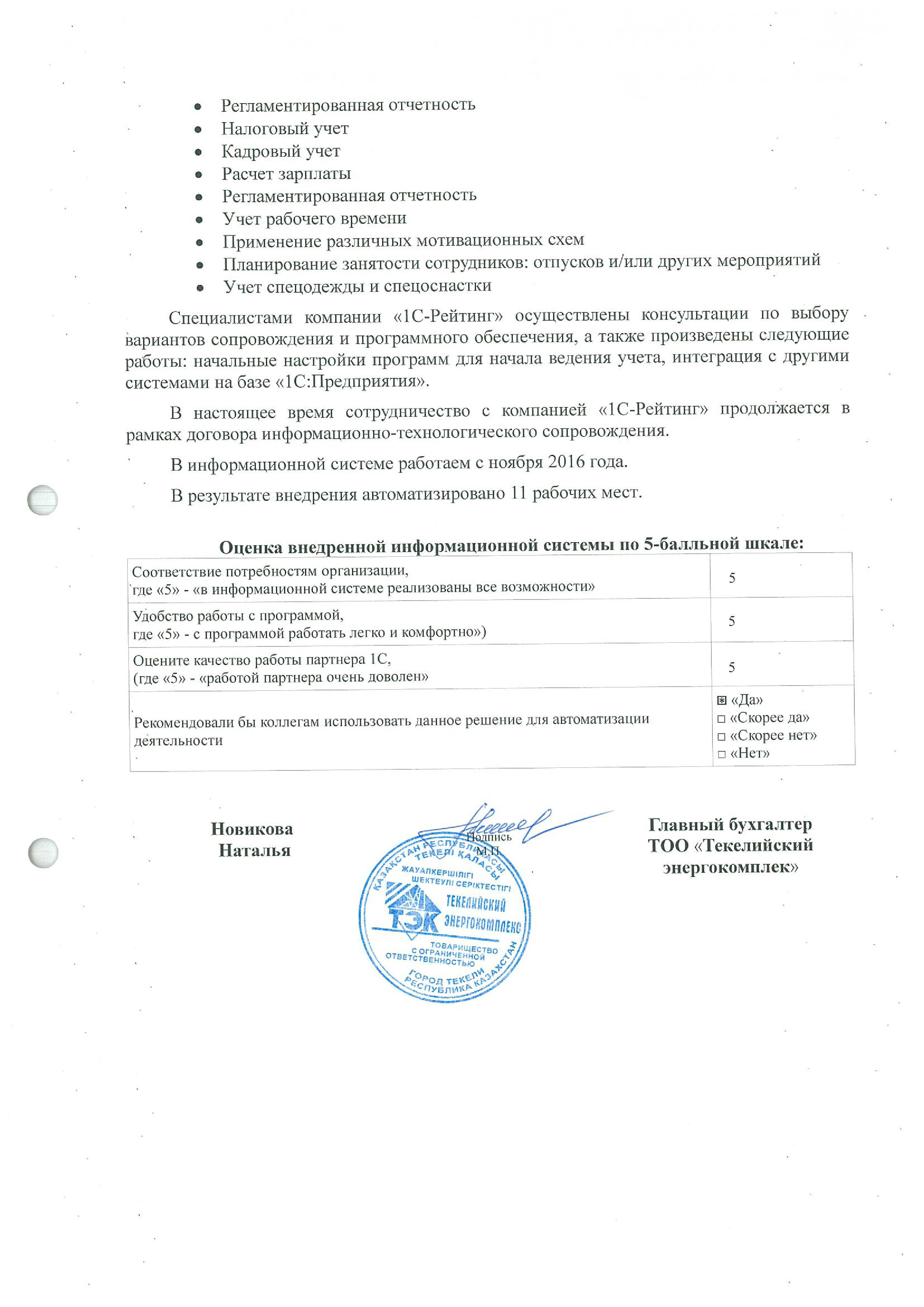Автоматизация бухгалтерского, налогового, оперативного учета, расчета заработной платы и учета спецодежды иинвентаря в ТОО «Текелийский энергокомплекс»