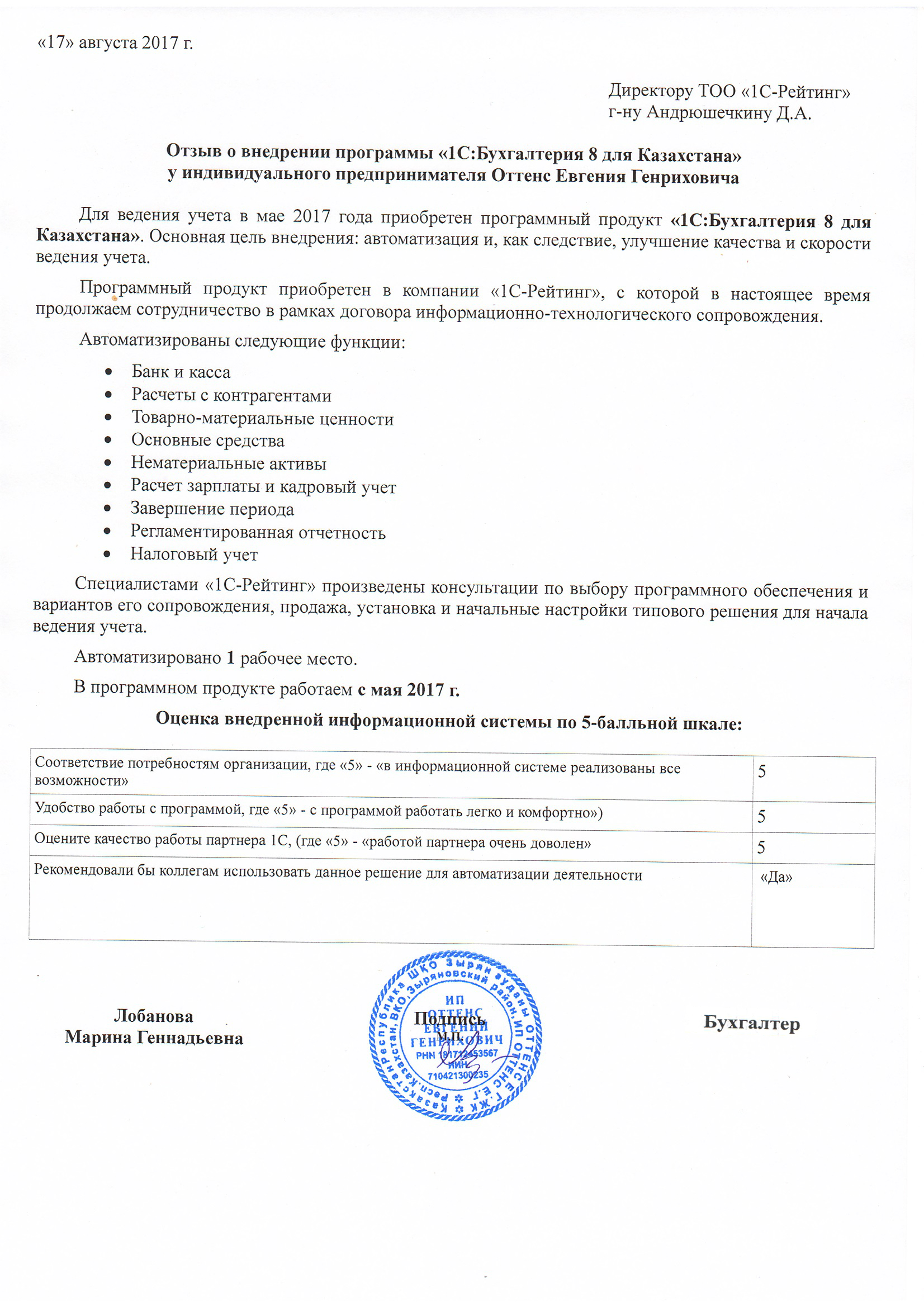 - Осуществляется консультирование по методическим вопросам работы с программой 1С