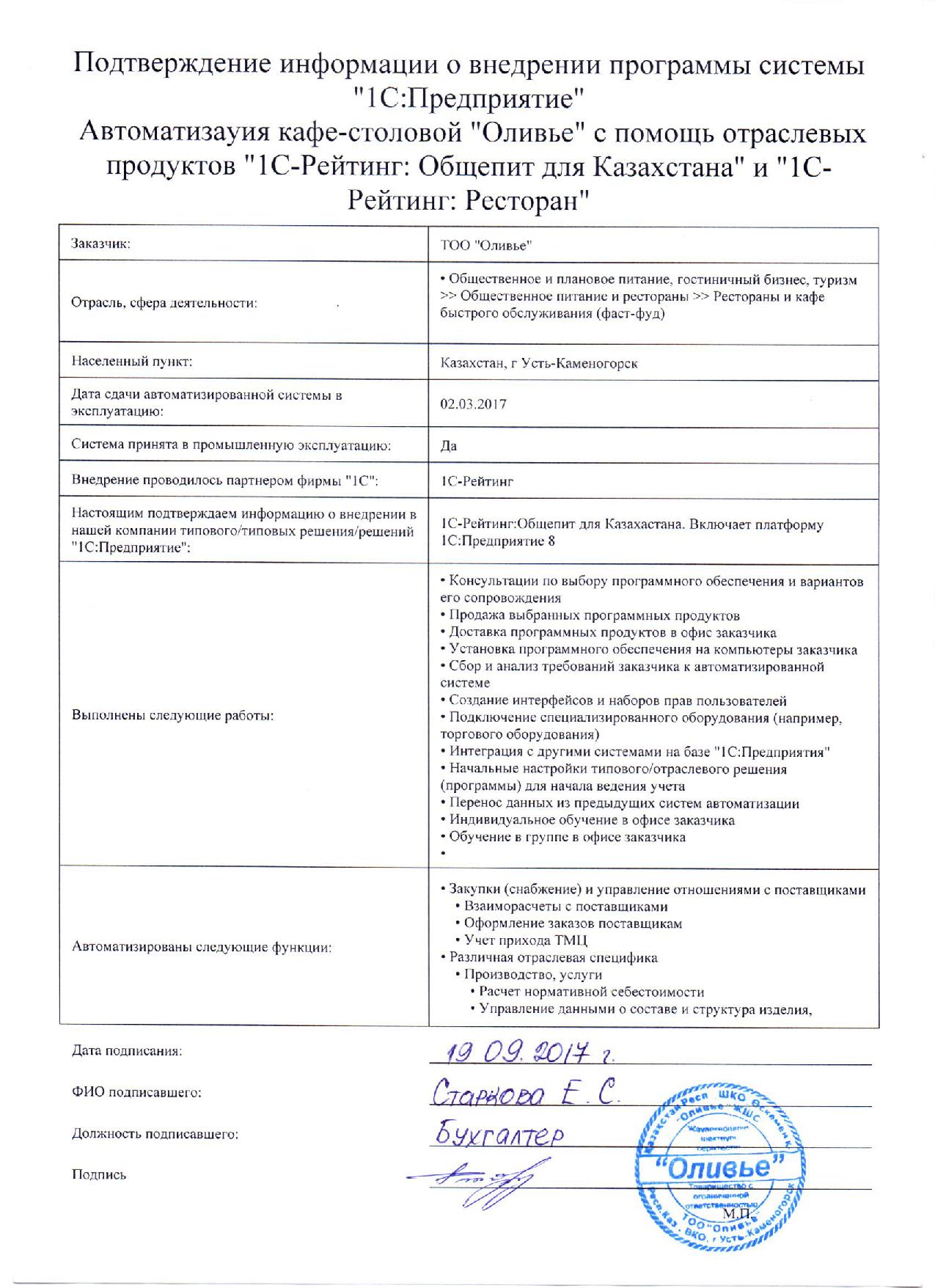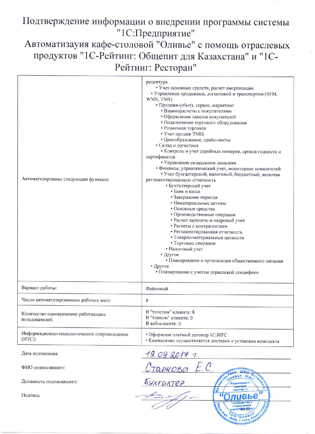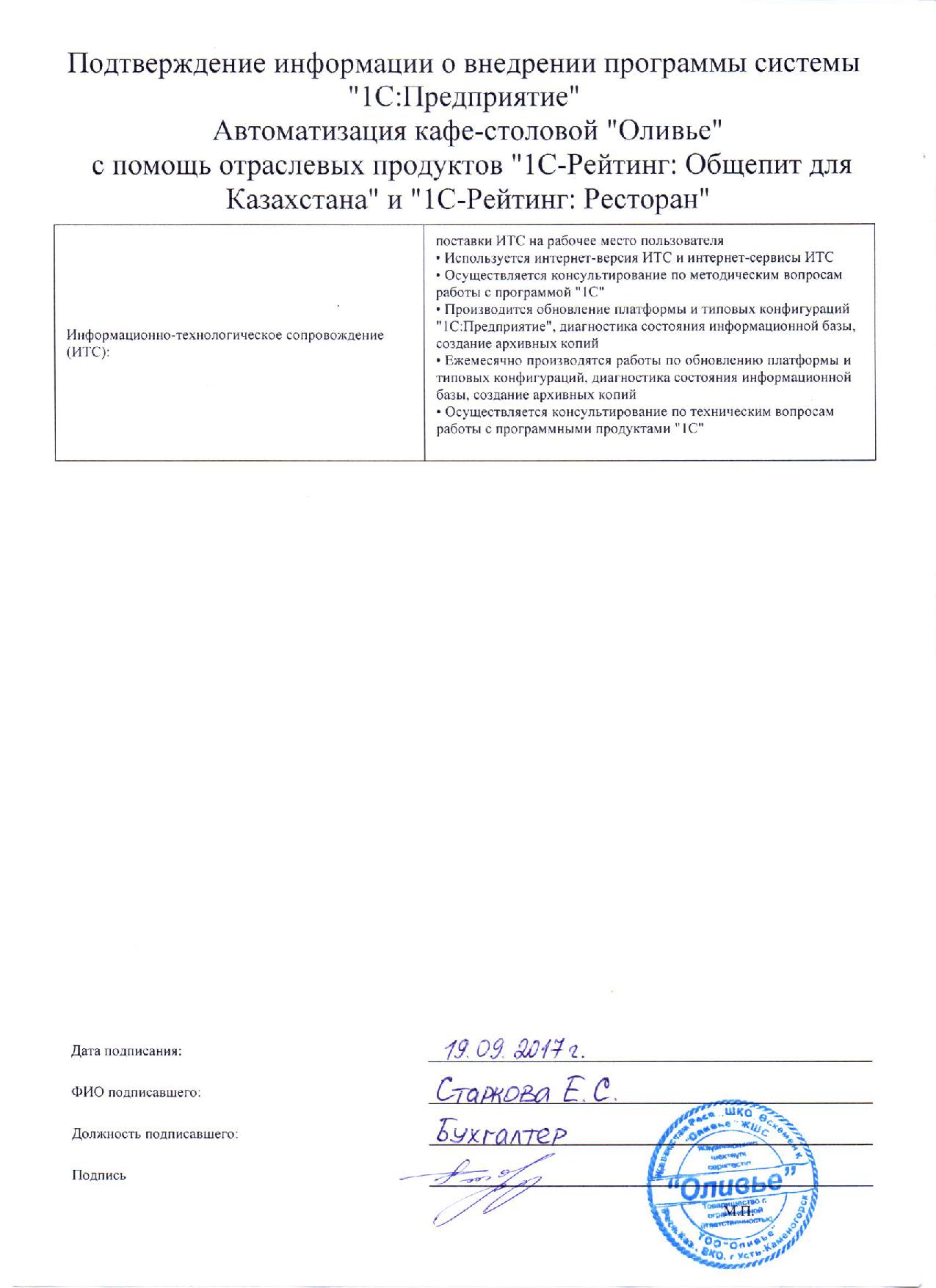 - Ежемесячно производятся работы по обновлению платформы и типовых конфигураций, диагностика состояния информационной базы, создание архивных копий