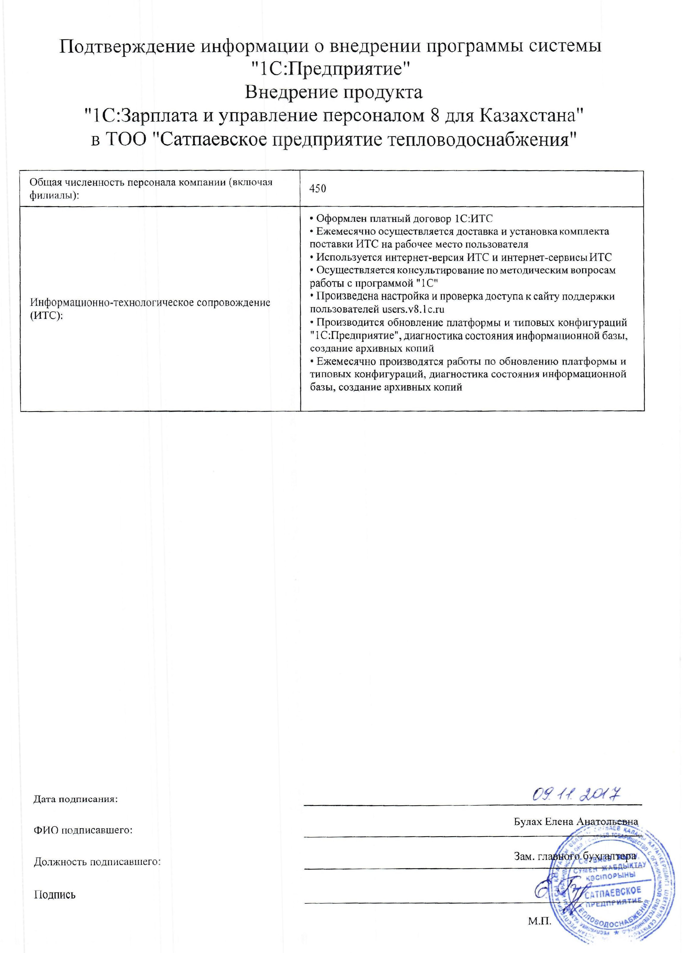 | Внедренное типовое решение: | 1С:Зарплата и Управление персоналом для Казахстана |
