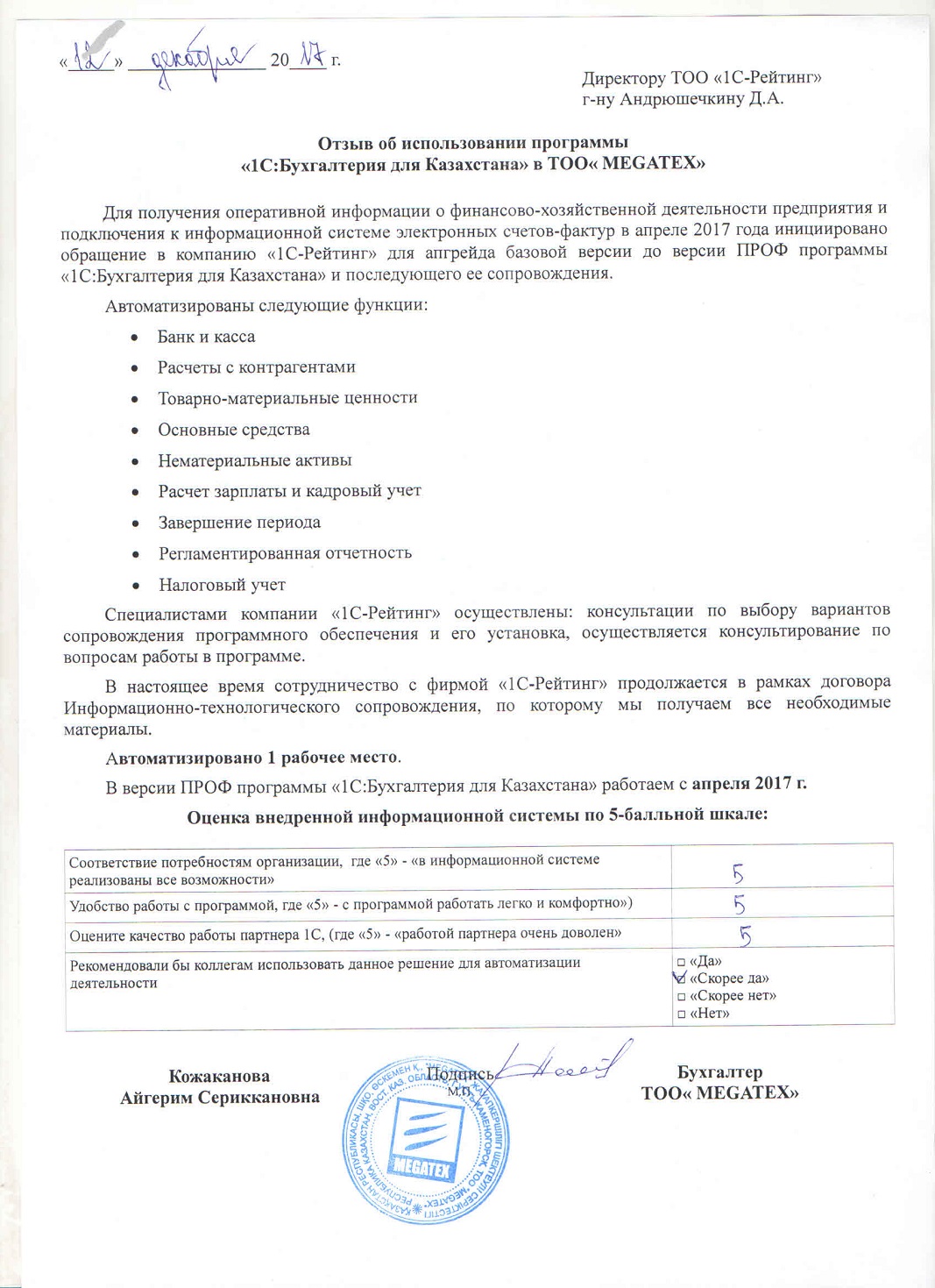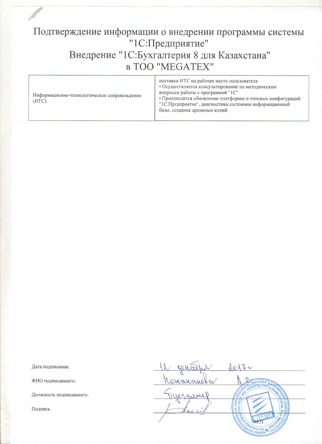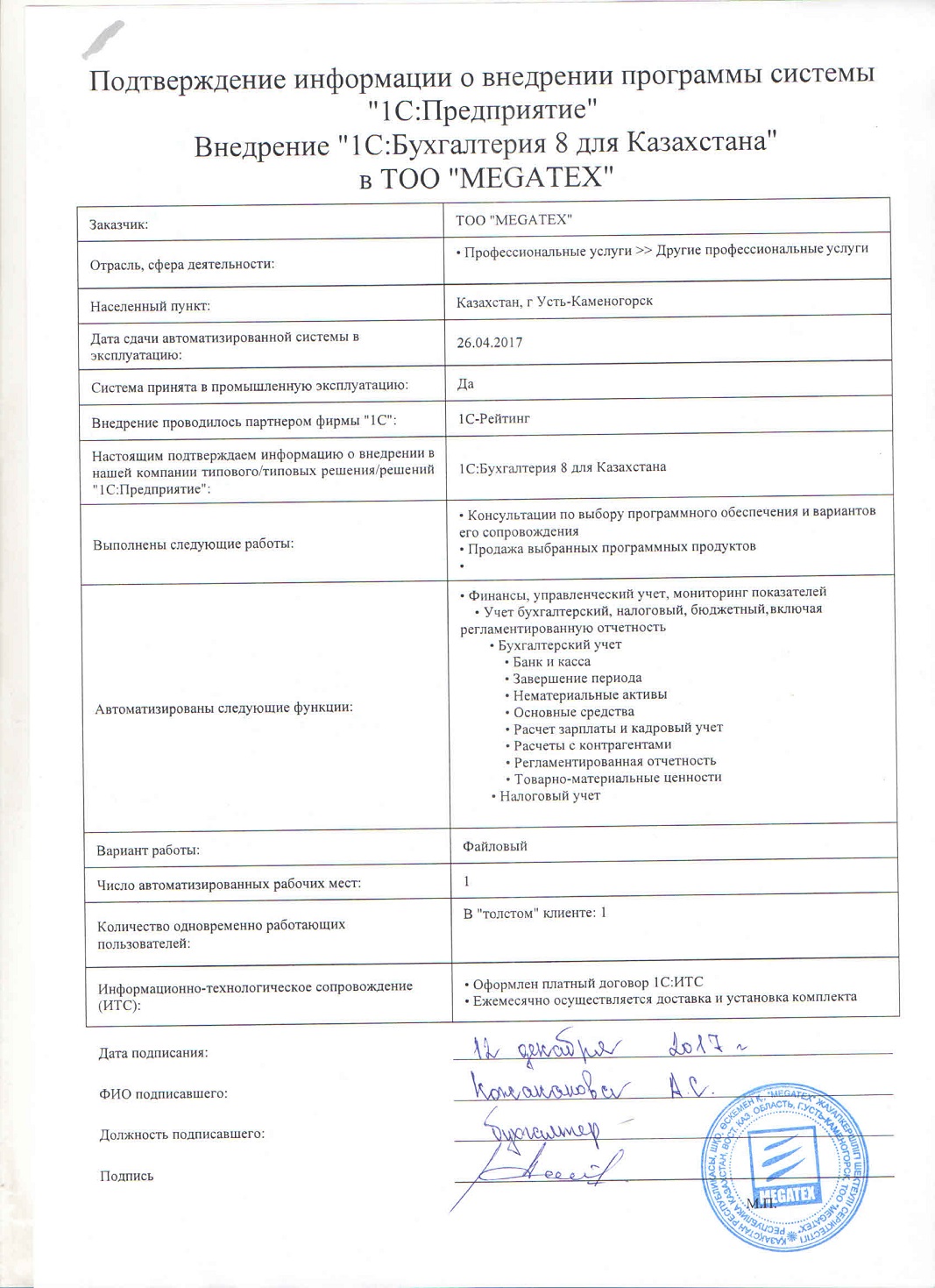 | Внедренное типовое решение: | 1С:Бухгалтерия 8 для Казахстана |