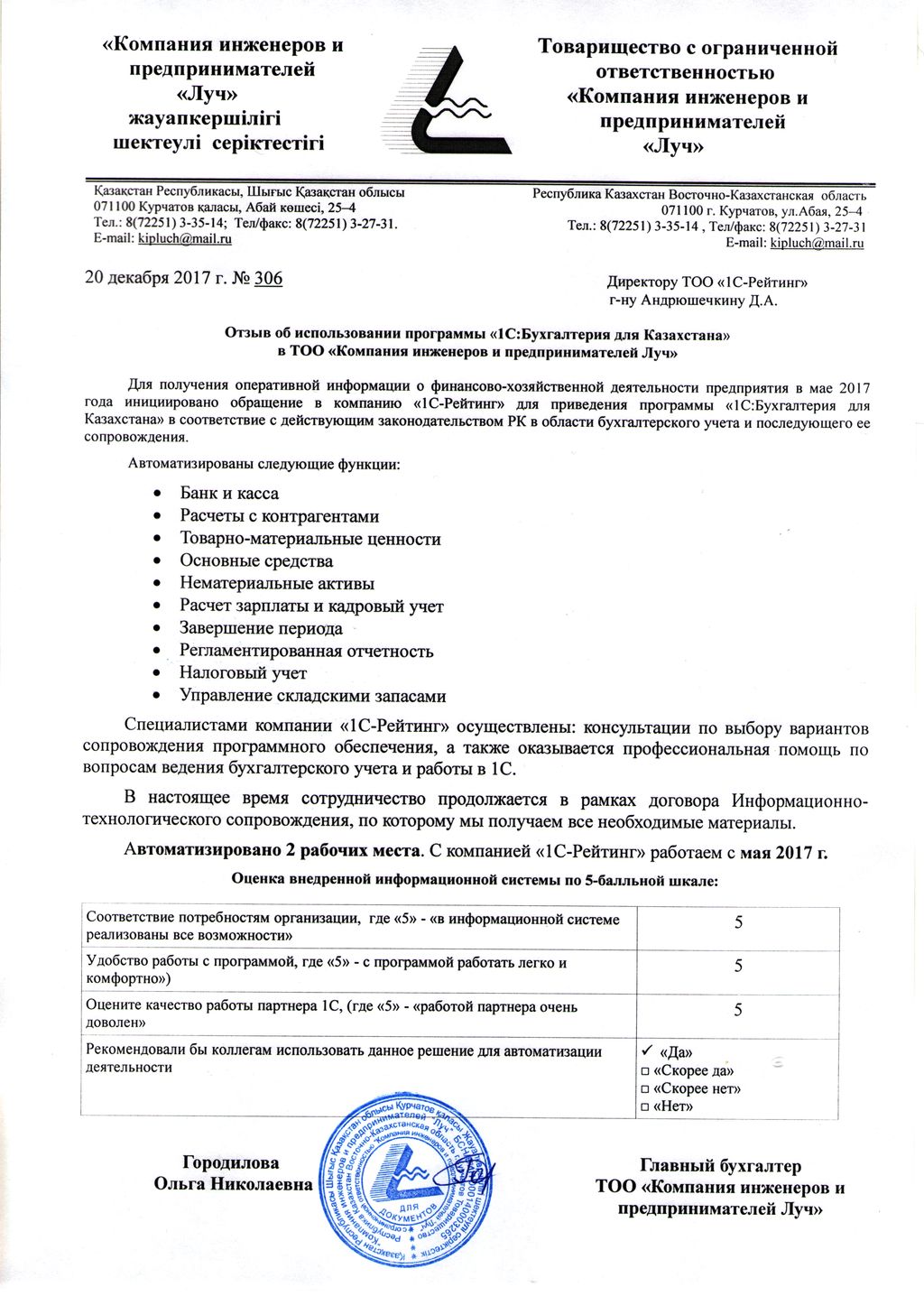 | Внедренное типовое решение: | 1С:Бухгалтерия 8 для Казахстана |