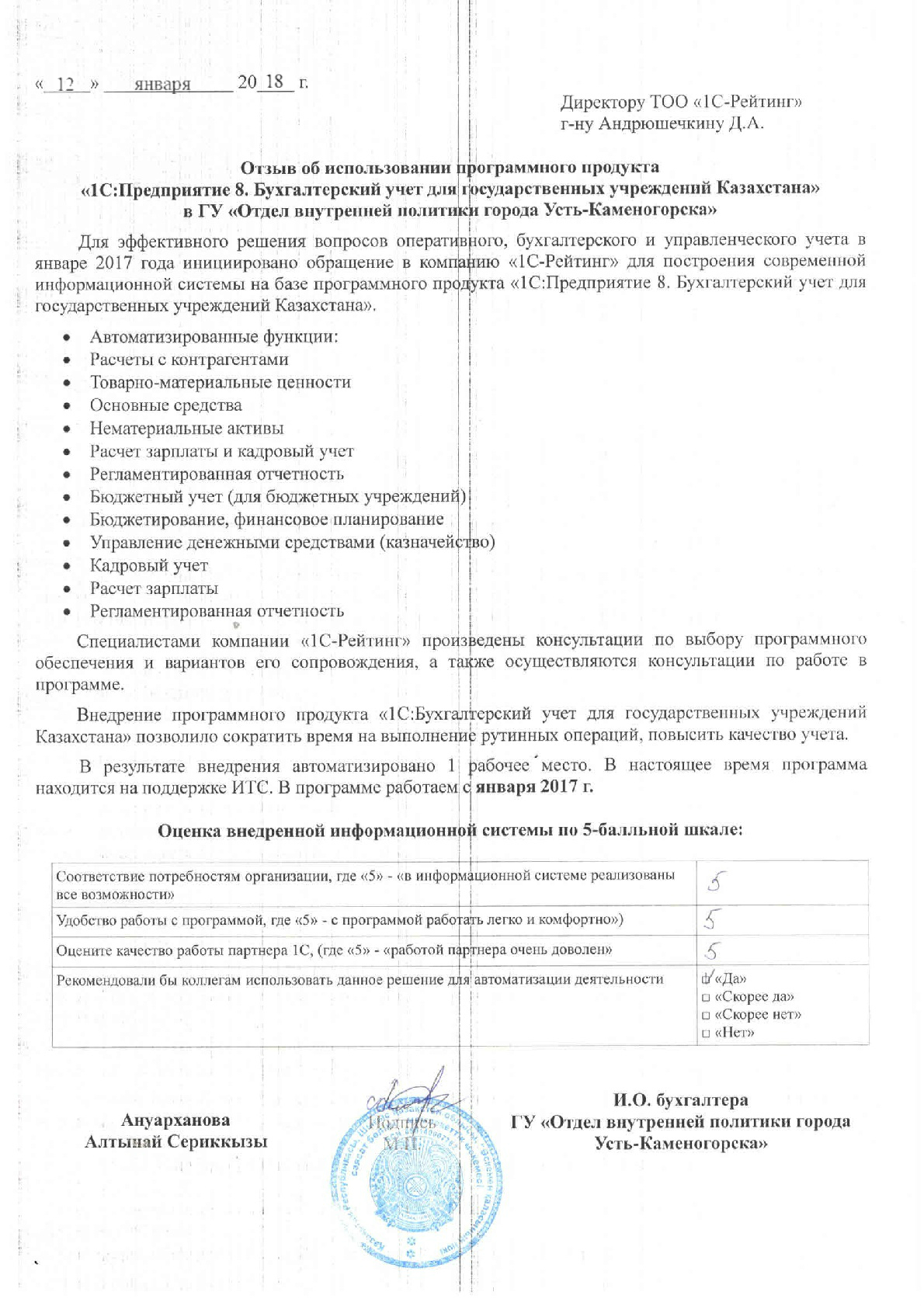 Внедренное решение: 1С:Бухгалтерский учет для государственных учреждений Казахстана