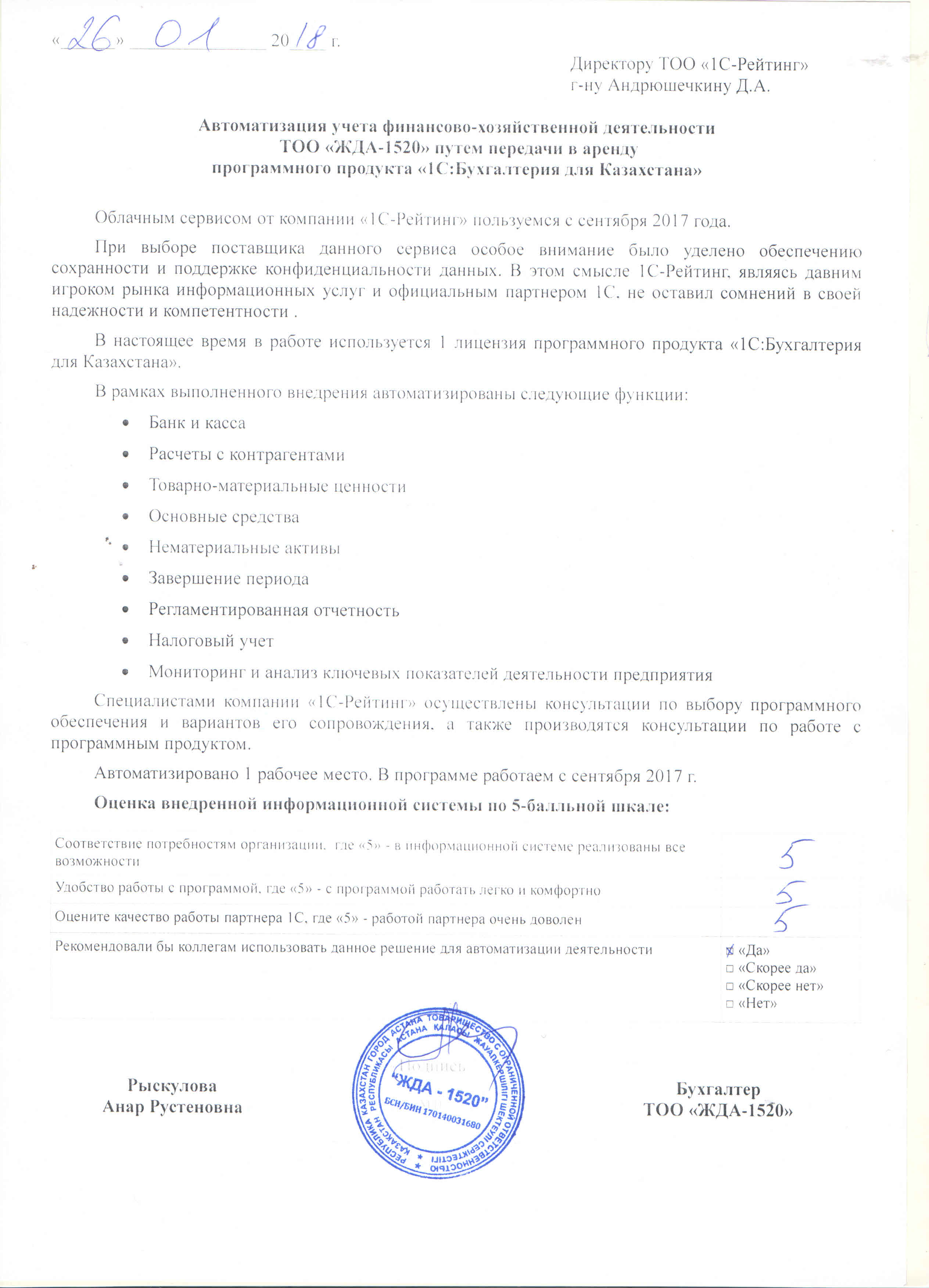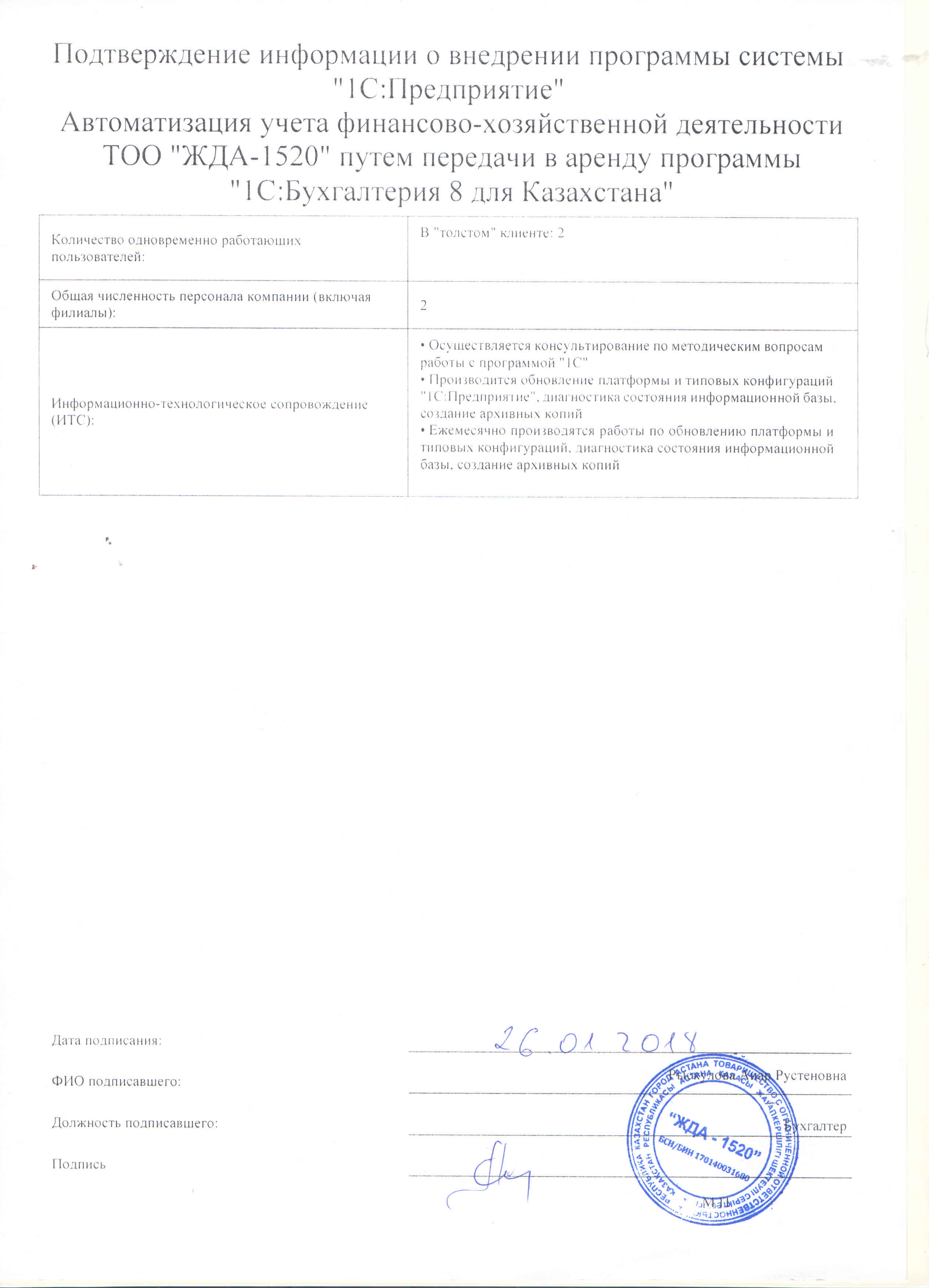 | Арендованное типовое решение: | 1С:Бухгалтерия для Казахстана |