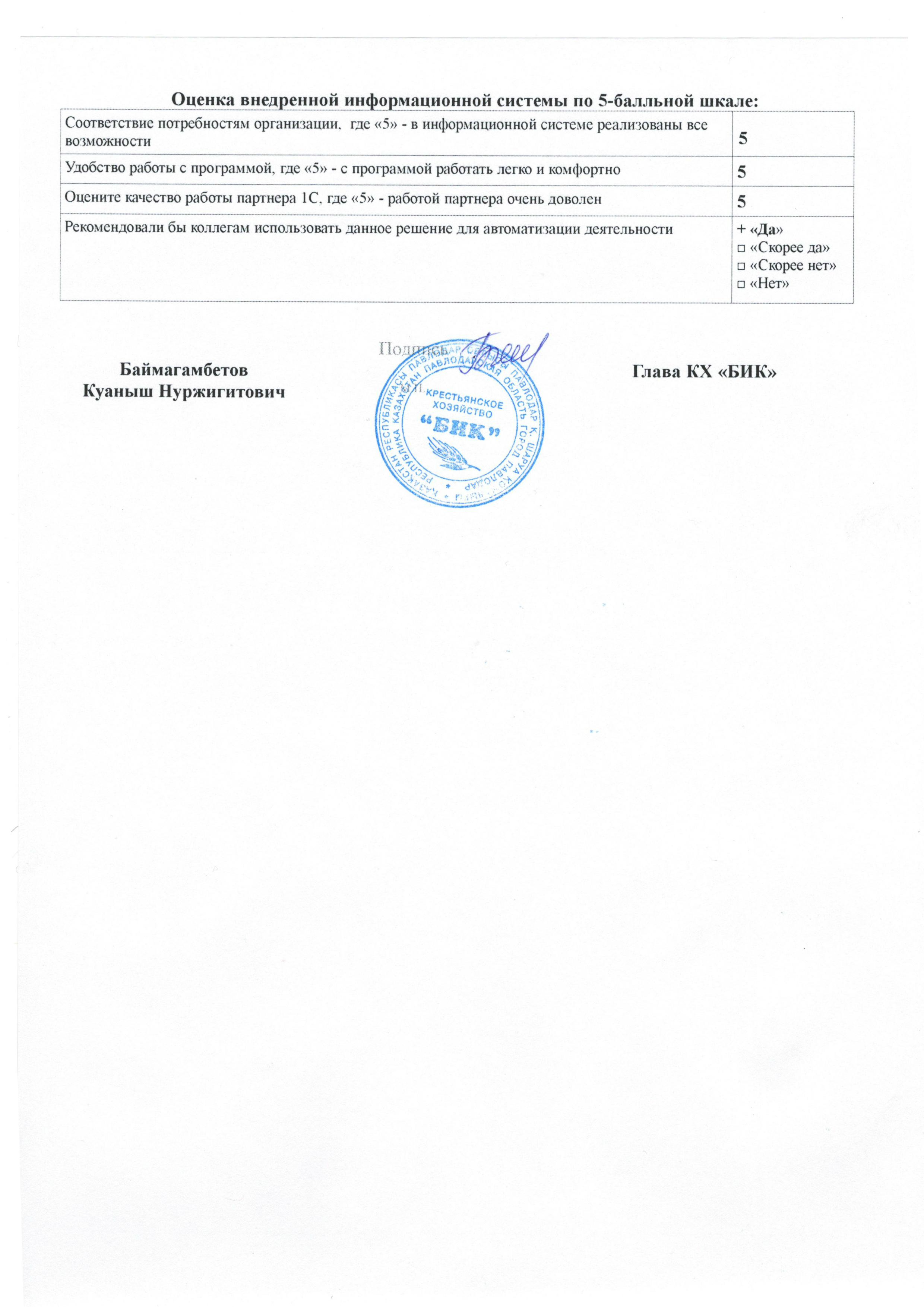 Крестьянского хозяйства «БИК»