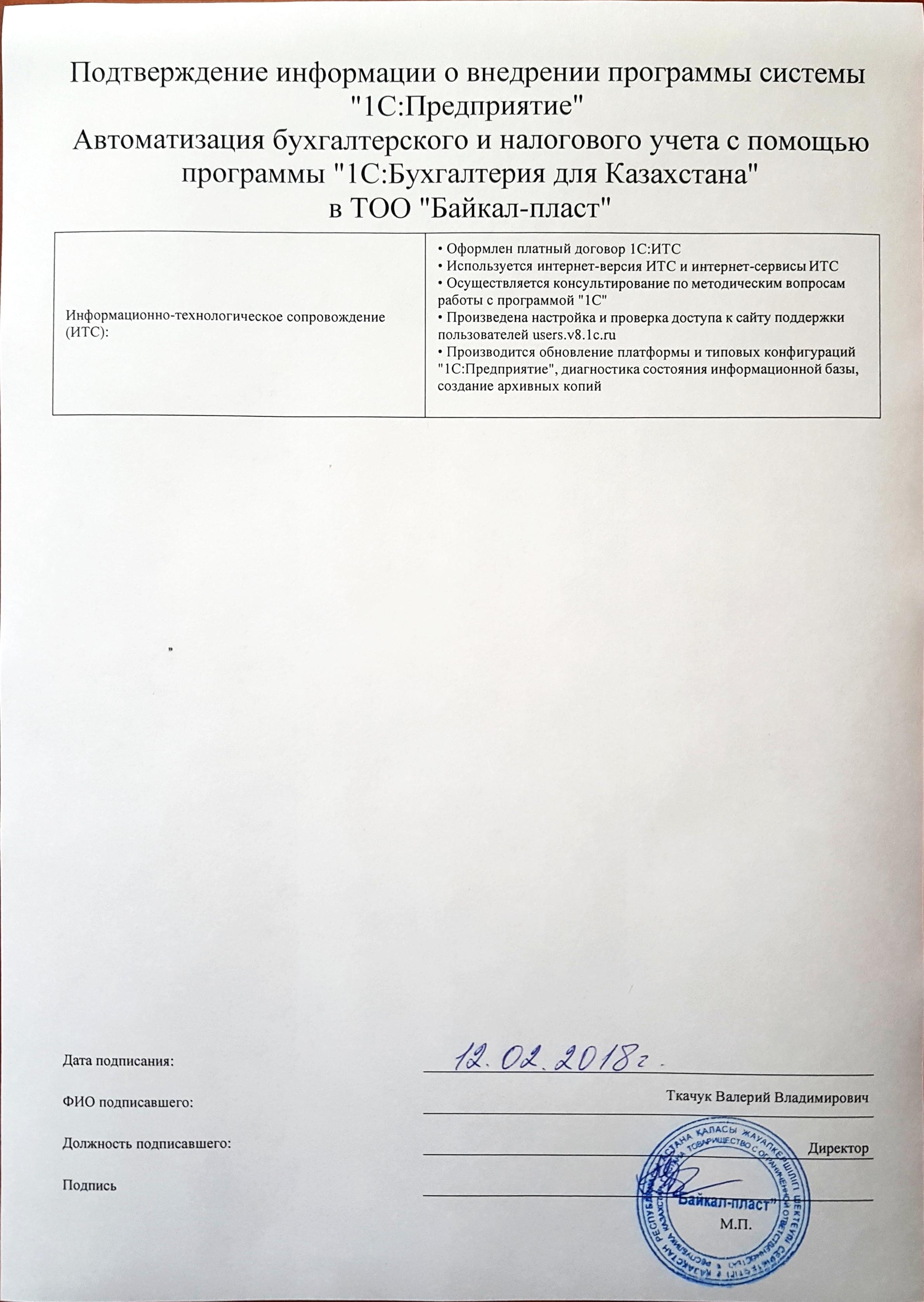 | Внедренное типовое решение: | 1С:Бухгалтерия для Казахстана