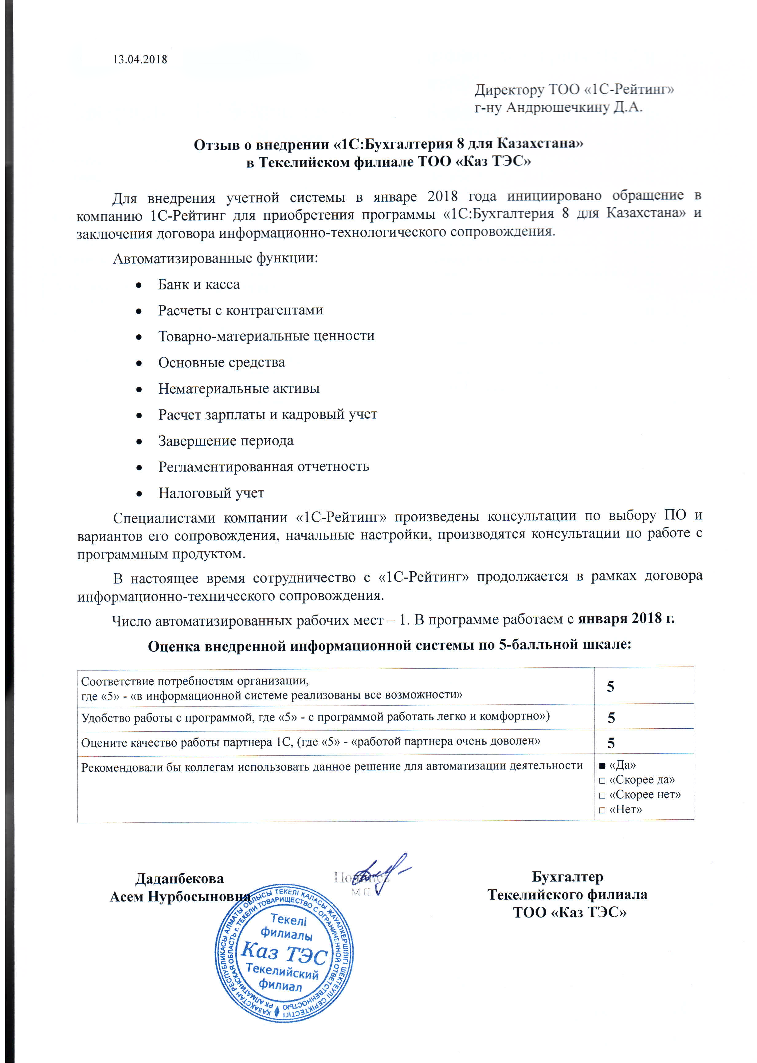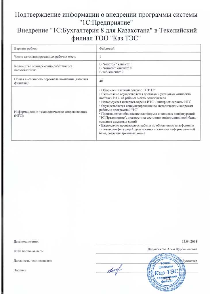 | Внедренное типовое решение: | 1С:Бухгалтерия 8 для Казахстана |