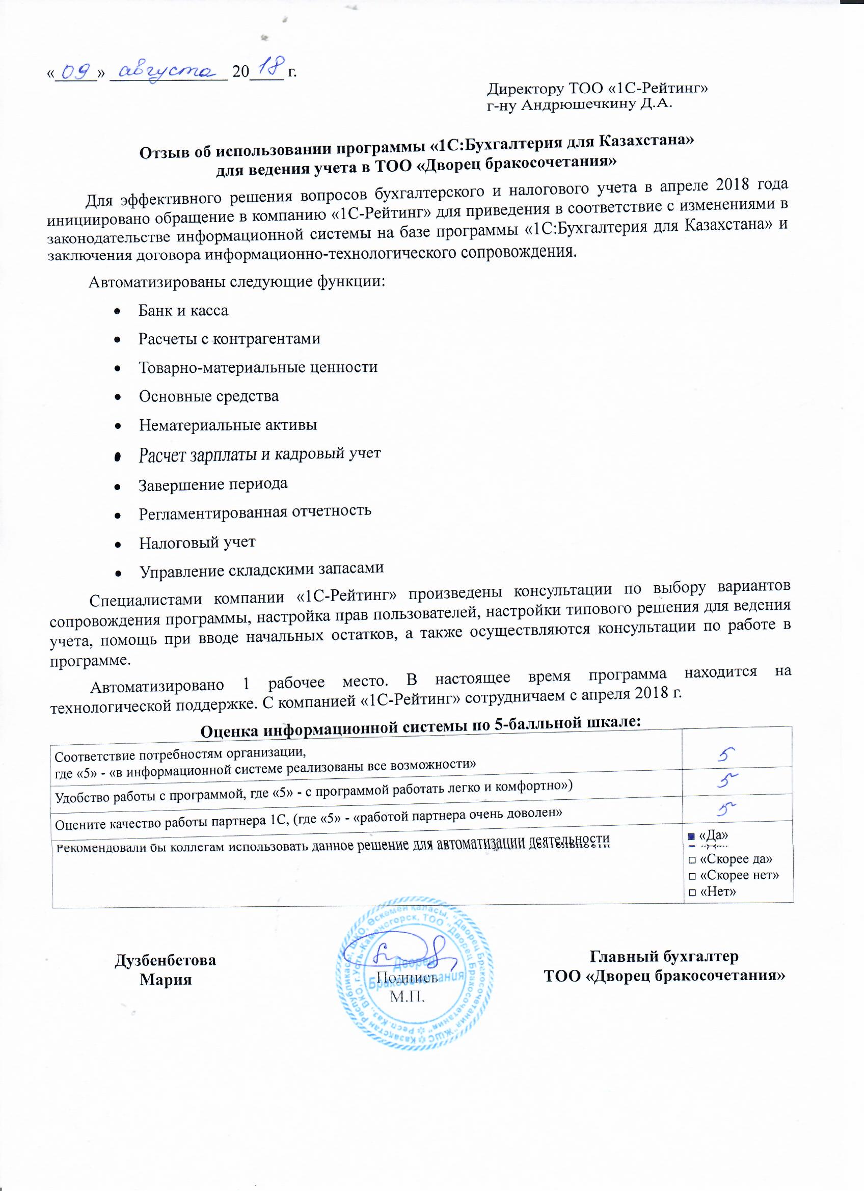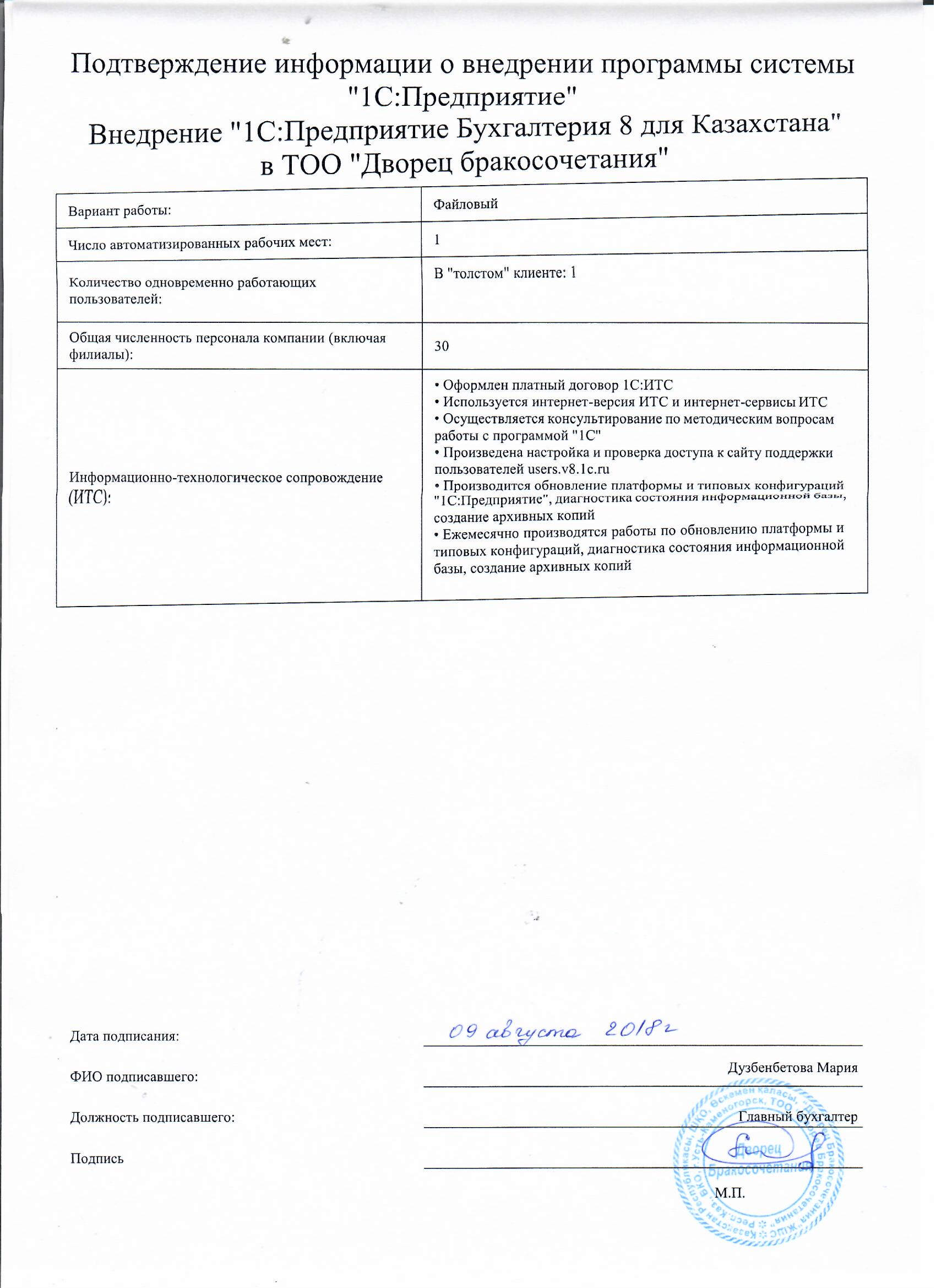 | Внедренное типовое решение: | 1С:Бухгалтерия 8 для Казахстана |