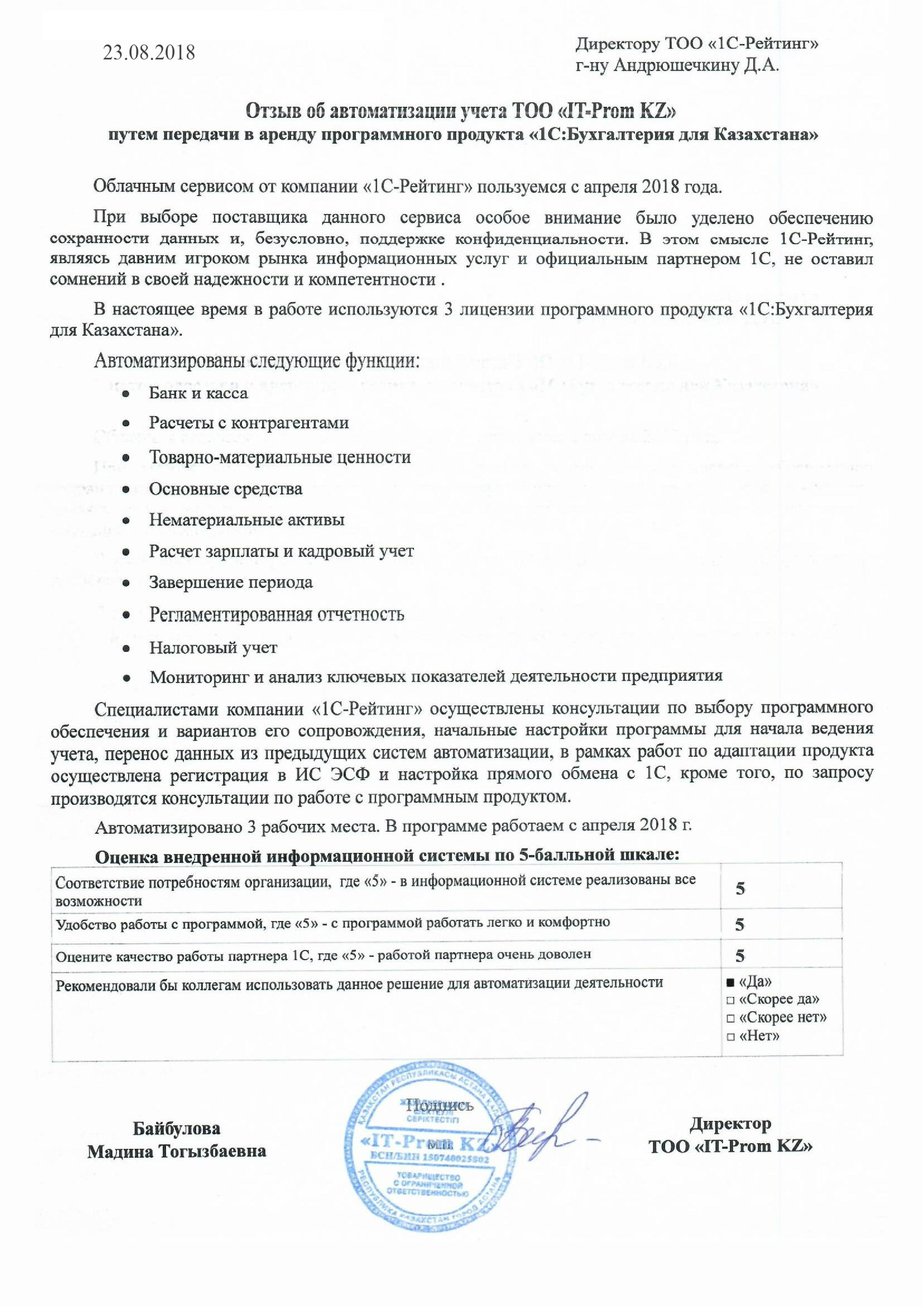 | Арендованное типовое решение: | 1С:Бухгалтерия для Казахстана |