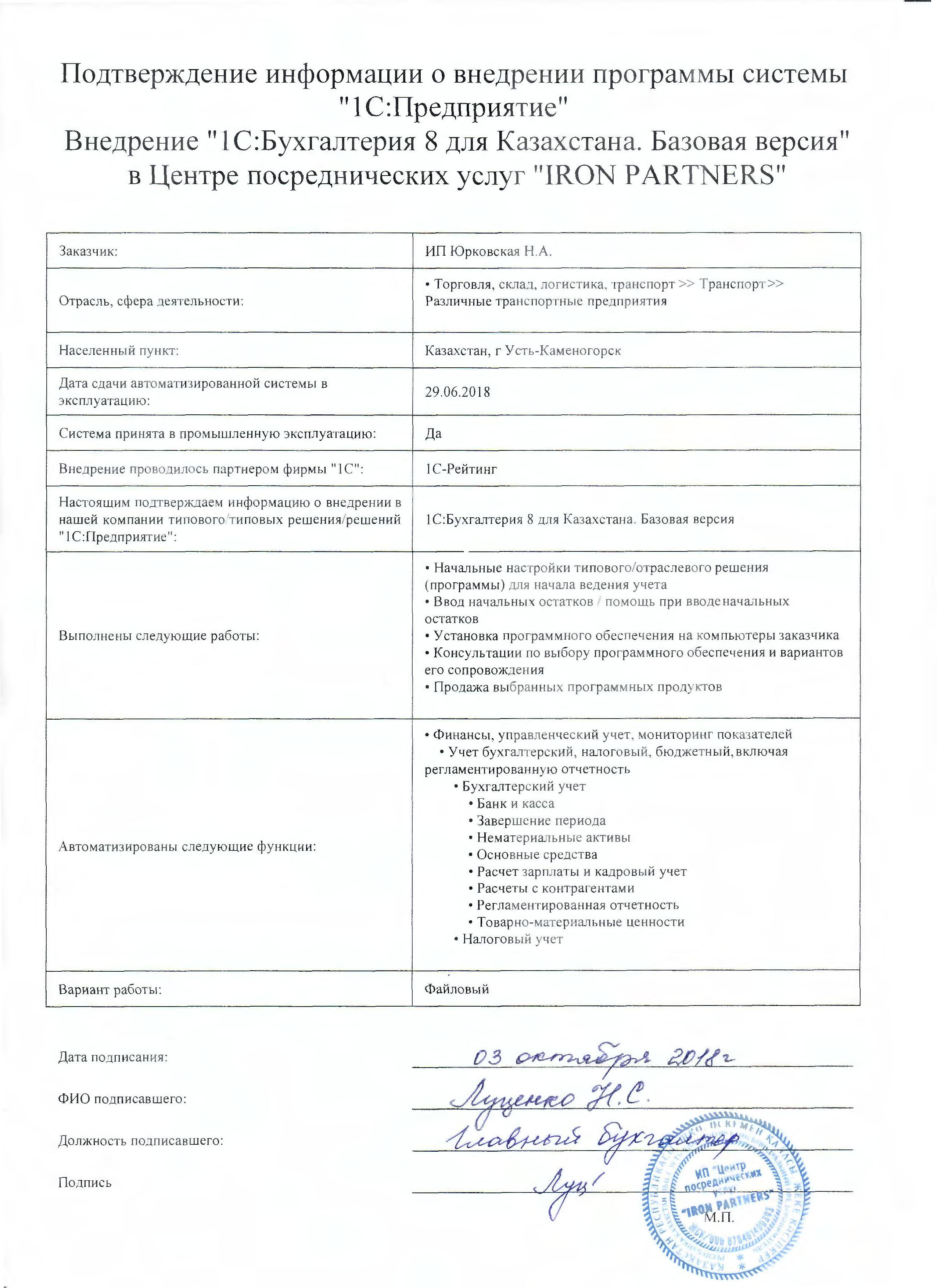 | Внедренное типовое решение: | 1С:Бухгалтерия для Казахстана. Базовая версия |