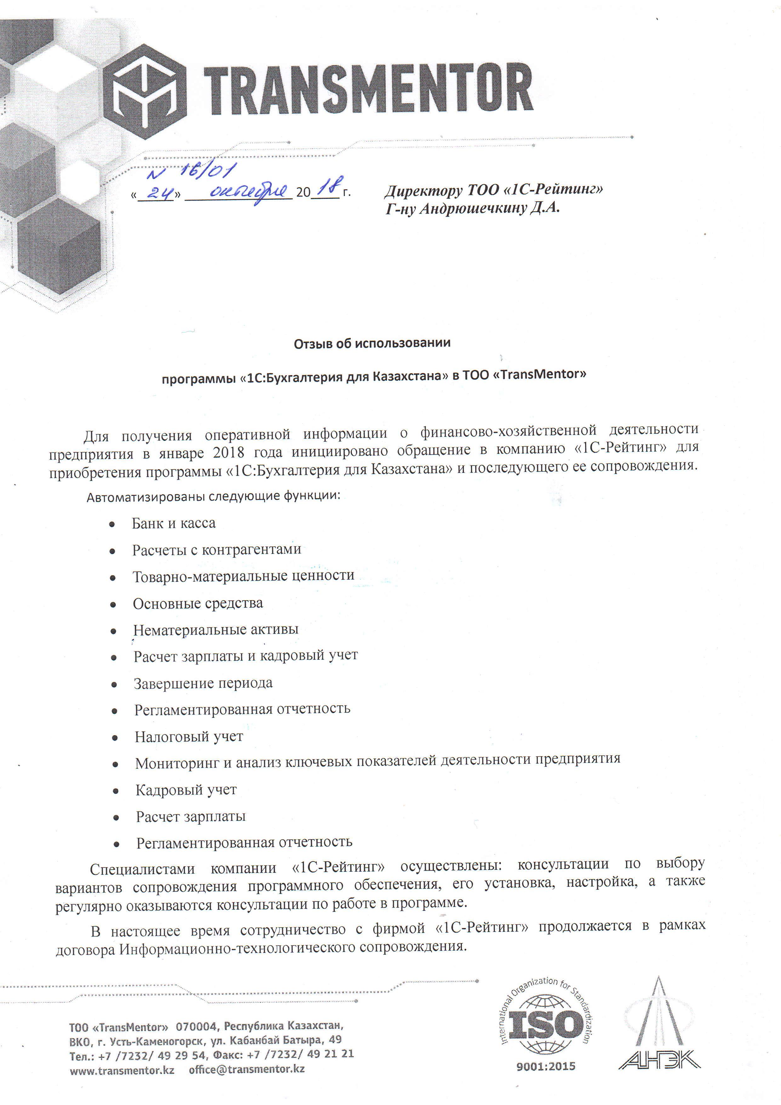 | Внедренное типовое решение: | 1С:Бухгалтерия 8 для Казахстана |