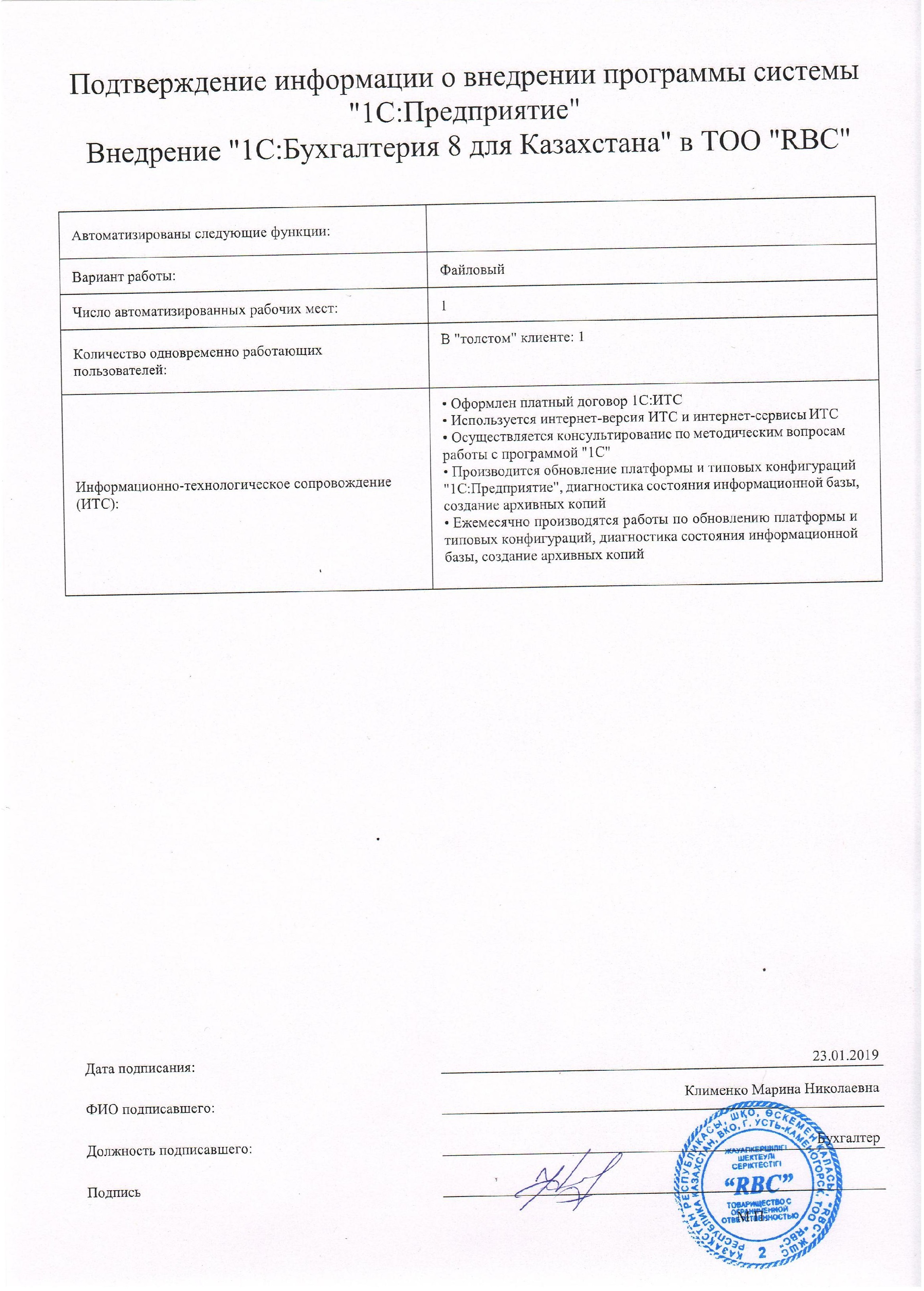| Внедренное типовое решение: | 1С:Бухгалтерия 8 для Казахстана |