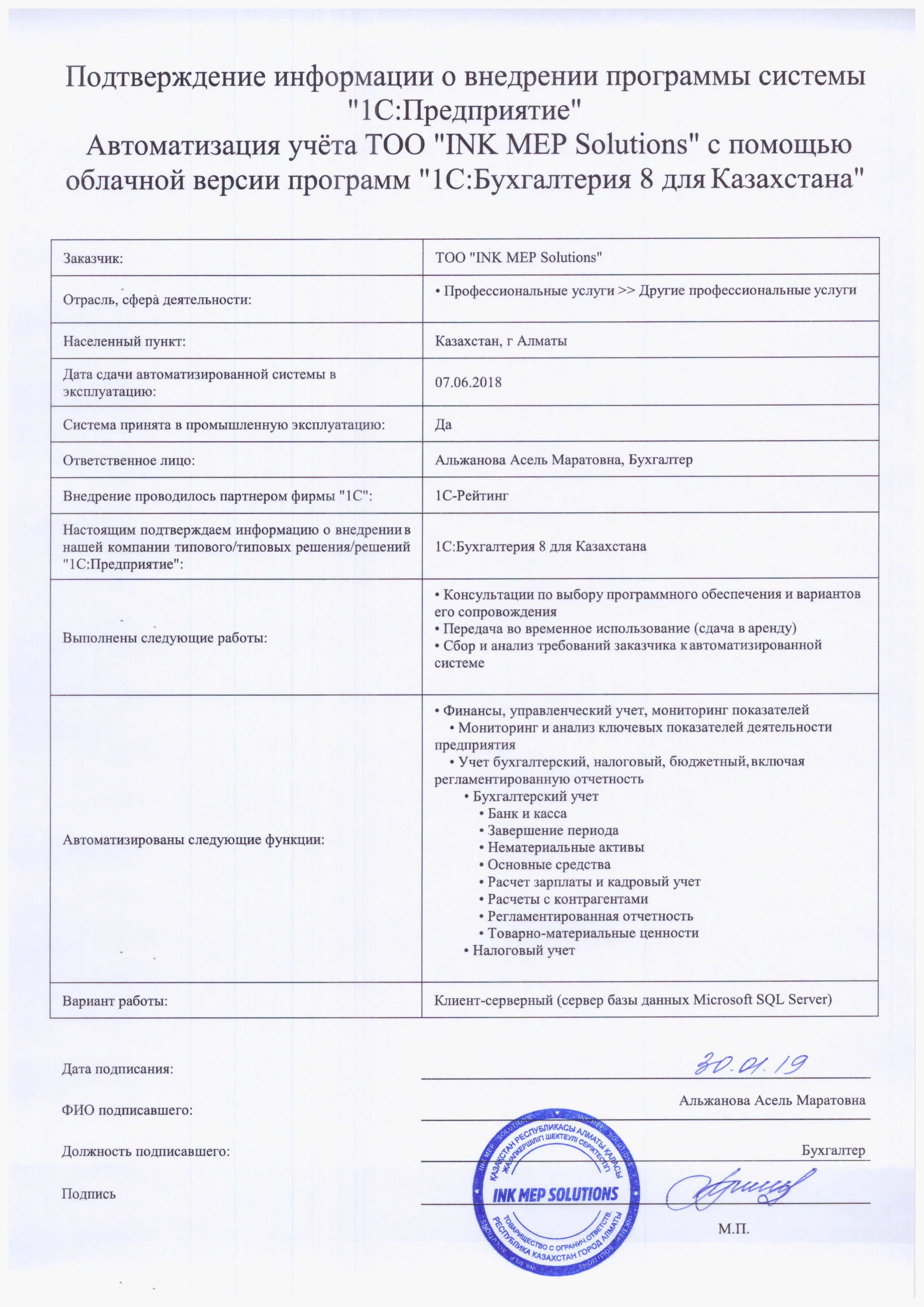 ТОО «INK MEP Solutions»