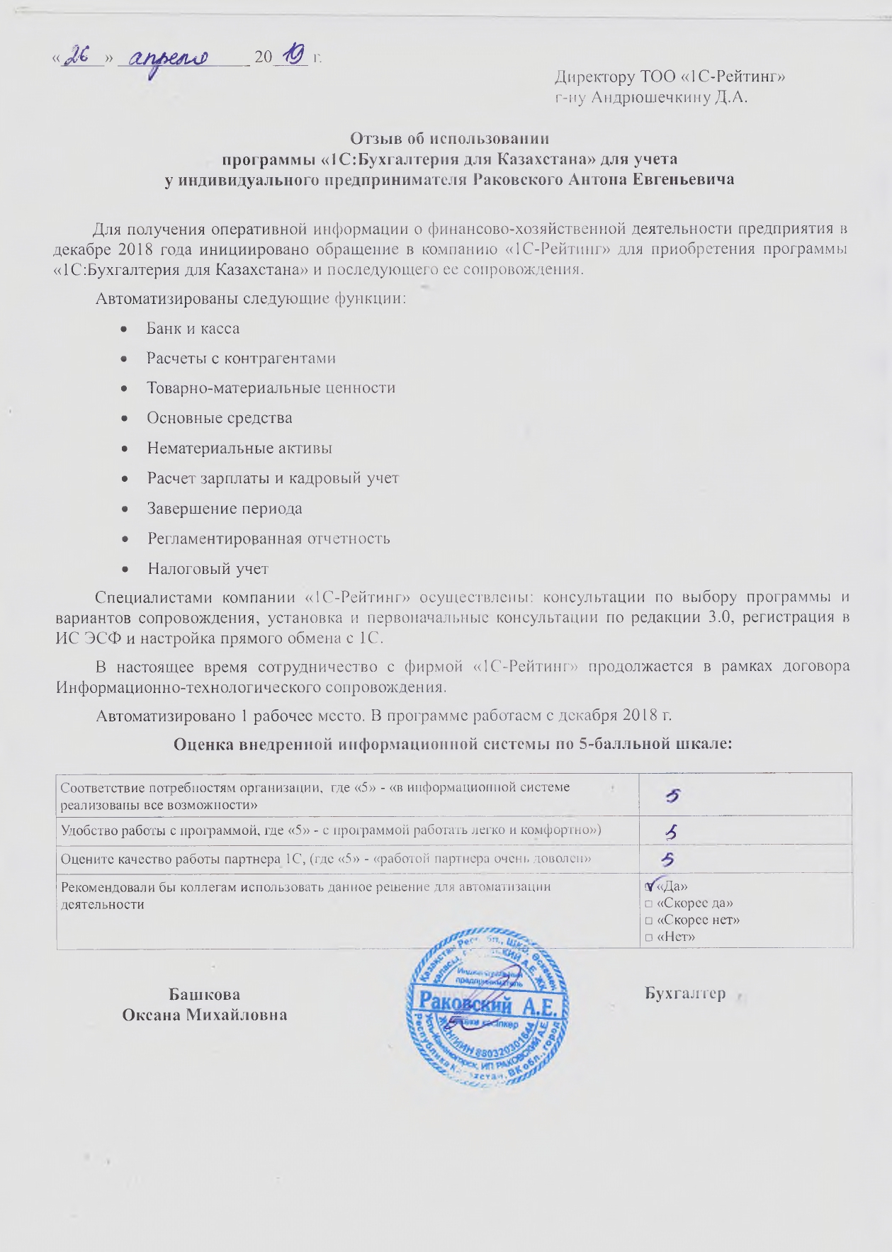 | Внедренное типовое решение: | 1С:Бухгалтерия 8 для Казахстана |