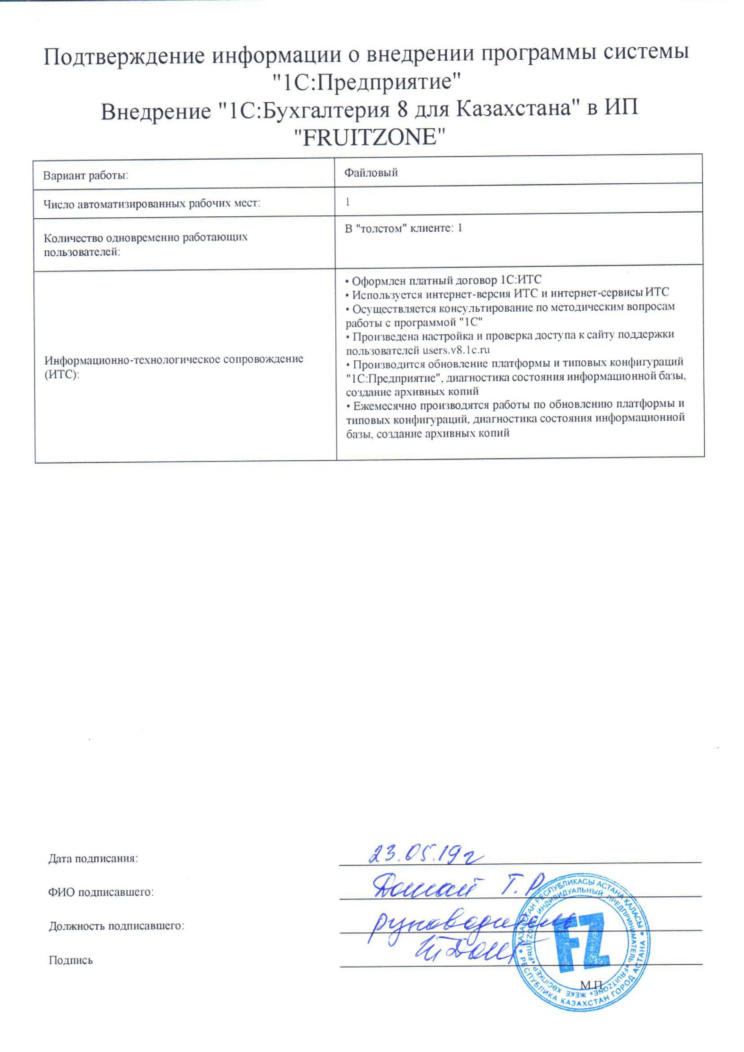 - Оформлен платный договор 1С:ИТС