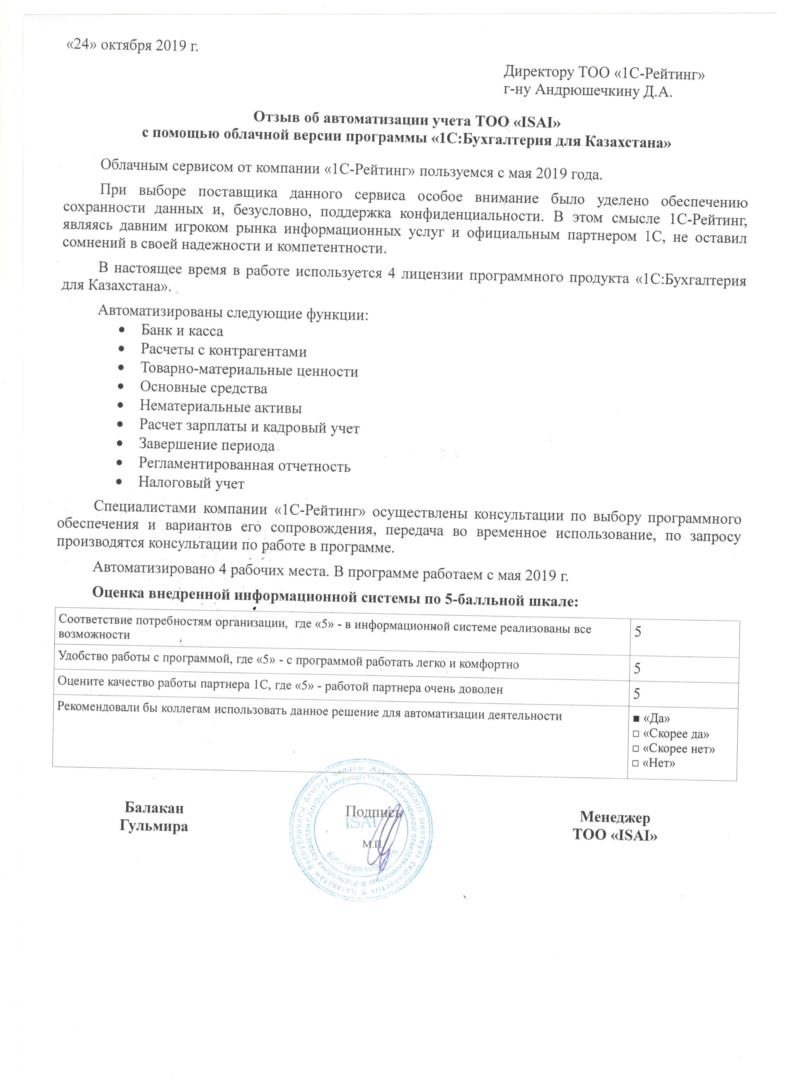 | Арендованное типовое решение: | 1С:Бухгалтерия для Казахстана |