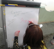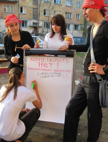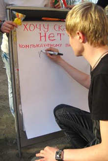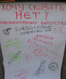 К Международному Дню защиты Интеллектуальной собственности на Набережной Иртыша в рамках «Недели добрых дел», проводимой Молодежным Информационным Центром ВКО, Редакцией газеты «Молодёжный Клуб» и «Клубом молодых журналистов» при поддержке компании «1С-Рейтинг», была проведена акция «Хочу сказать НЕТ компьютерным пиратам!», в которой прохожие и школьники оставляли свое мнение на флипе и получали призы.