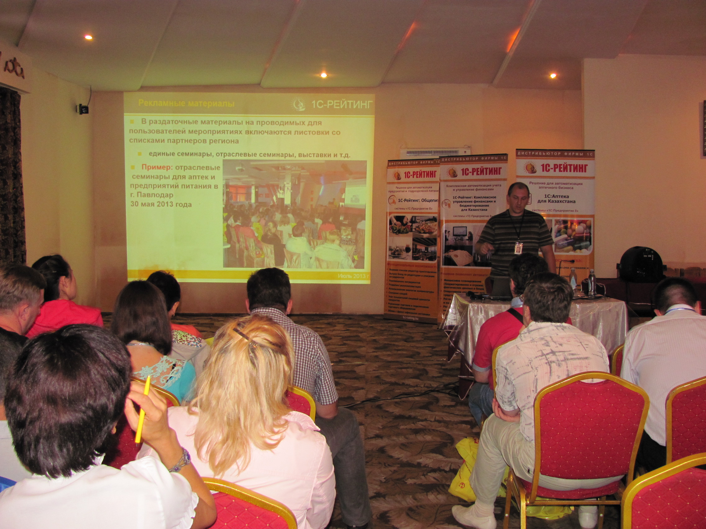 Особенно участниками была отмечена деловая игра «Алло! Хочу купить 1С!» — своеобразный конкурс для специалистов отдела продаж, ведущей которого выступила Ольга Прокопьева. Из сидящих в зале она сформировала три команды («зелёные», «синие», «красные»), задачей которых было: показать разные варианты общения с клиентом по телефону, учитывая, что «на другом конце провода» может оказаться бухгалтер, IT-шник или руководитель компании. Итоги конкурса подводило строгое жюри, в состав которого вошли эксперты — Олег Рублев (компания «Диалог Сервис»), Евгений Ваниев (ТОО «Ваниев») и Дмитрий Андрюшечкин («1С-Рейтинг»). По итогам конкурса были объявлены победители и вручены памятные призы. Чтобы в памяти остались не только впечатления и воспоминания, всем участникам семинара было решено подготовить и выслать диски с фото и видео этого незабываемого мероприятия.