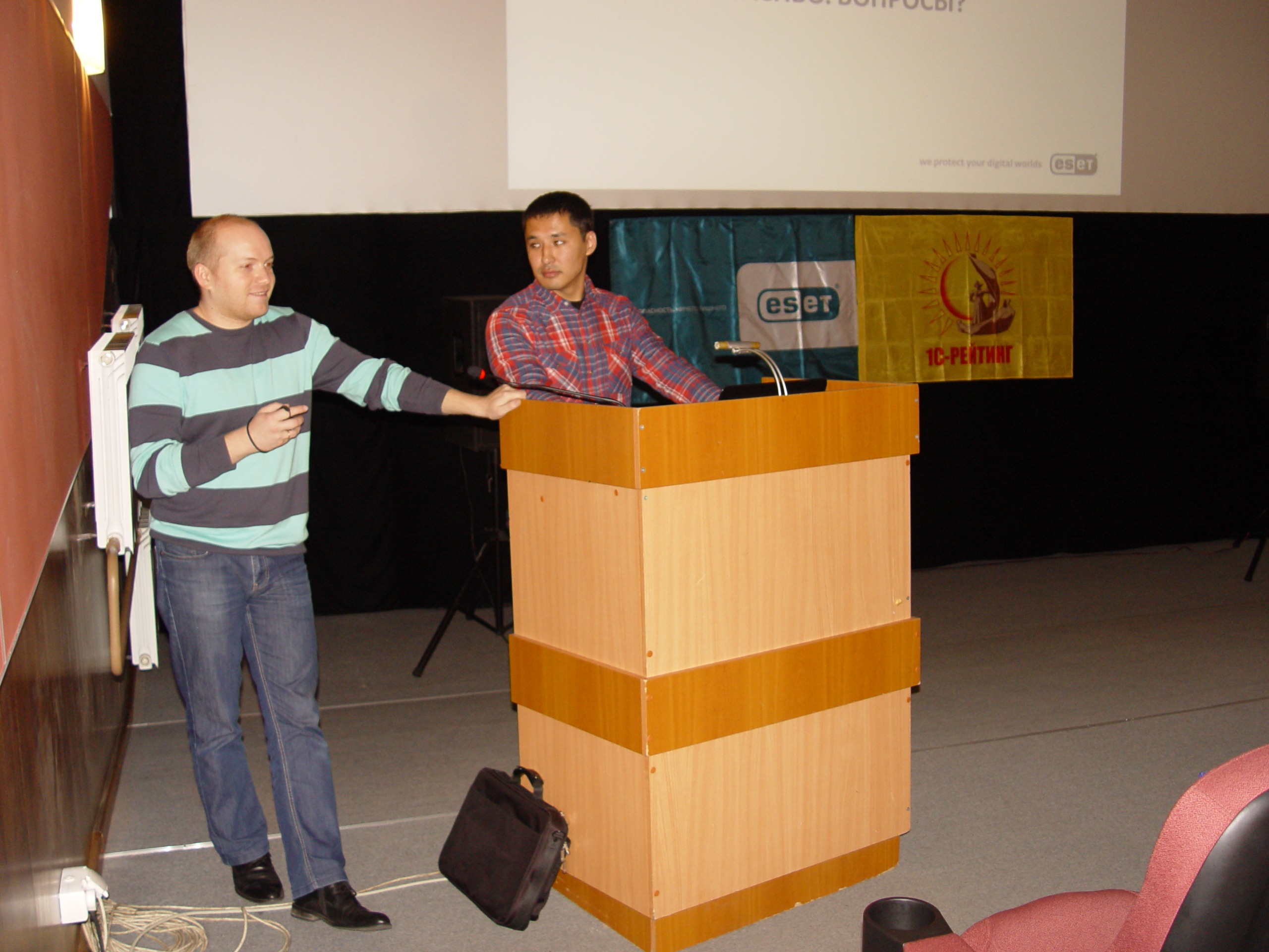 7 ноября в г.Усть-Каменогорске, в малом зале ЦДК «ULBA», прошел партнерский семинар по программным продуктам ESET, организованный компаниями «1С-Рейтинг» и «ESET». Cпикерами мероприятия выступили специалисты «ESET»: Дмитрий Ткачев - менеджер по развитию розничных продаж и Арнур Шулькеев - менеджер по работе с партнерами. Мероприятие посетили - IT-специалисты, менеджеры и руководители фирм-партнеров.