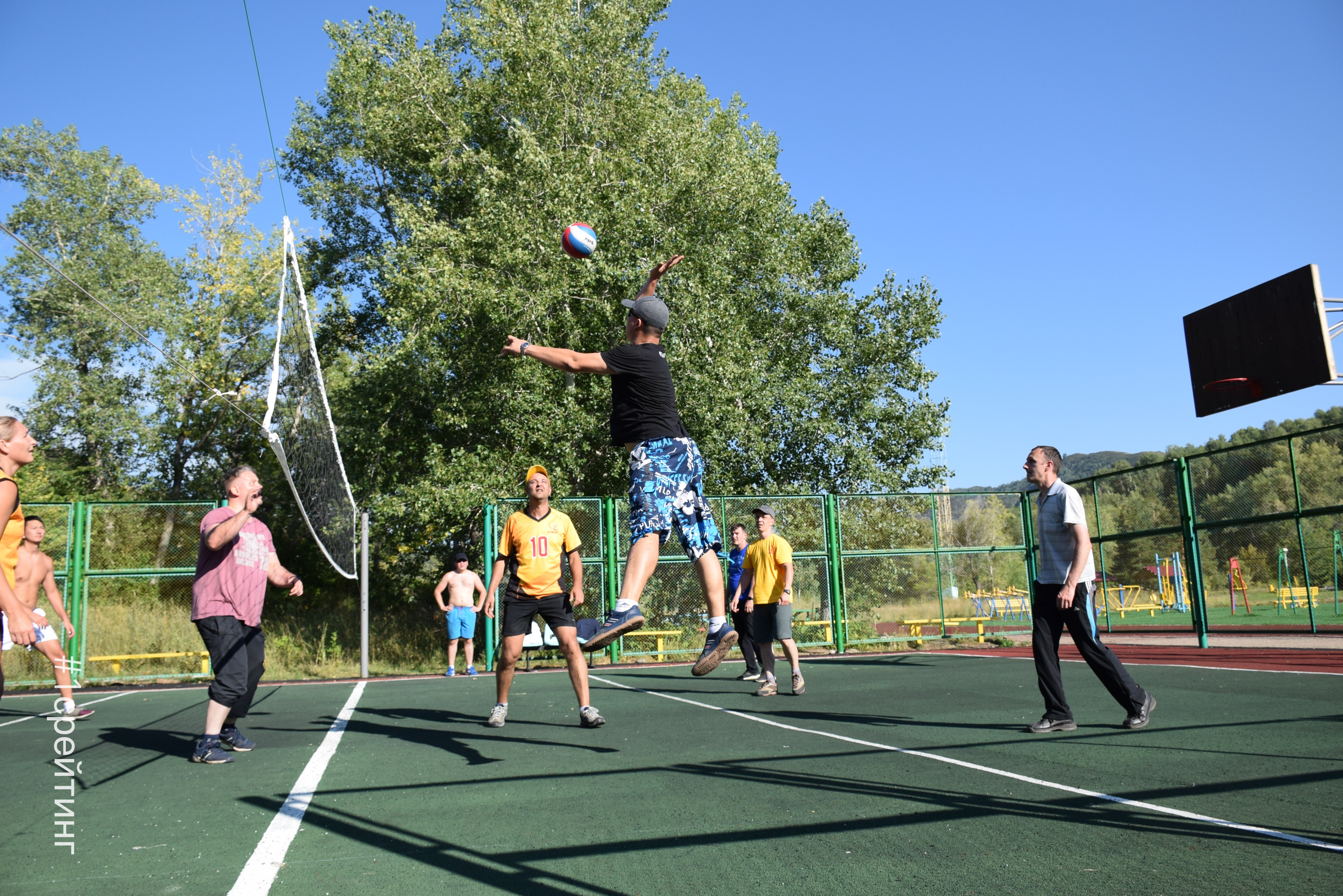 А вот в волейболе была интрига! Команд сформировалось целых три! И там была «заруба», 1 выиграли вторых, но проиграли третьим, тогда как вторые выиграли третьих. В общем путаница была та еще и только сами игроки понимали кто с кем играет, в результате какая-то команда победила :).