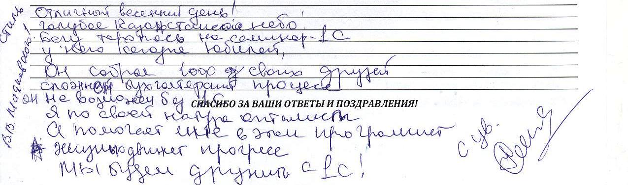 В честь юбилея слушатели семинара в своих анкетах написали поздравительные четверостишия:
