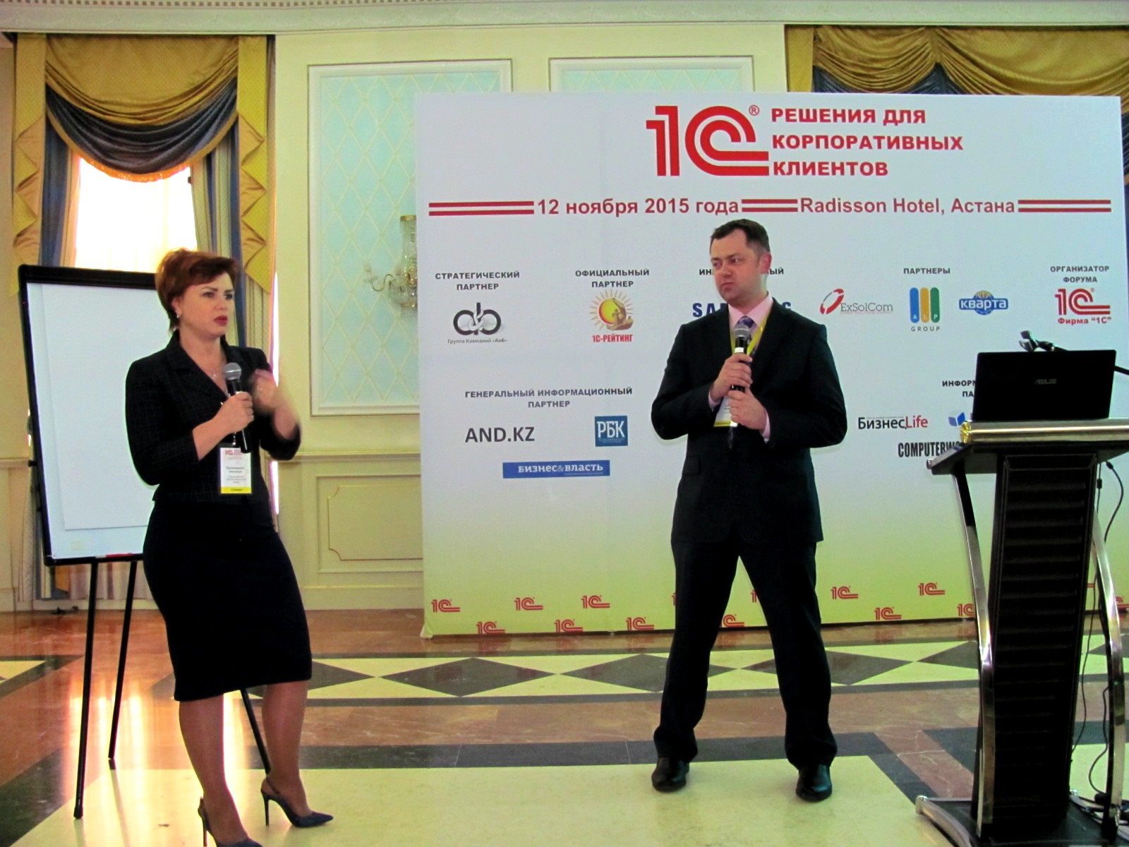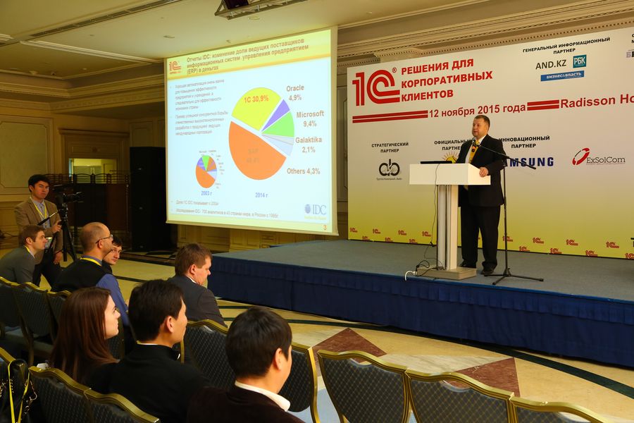 12 ноября 2015 года в Астане прошел Первый казахстанский 1С Форум для корпоративных клиентов. Мероприятие было посвящено обсуждению новейших разработок фирмы «1С» для автоматизации учета и процессов крупных предприятий, групп компаний и холдингов, новейших подходов к решению задач бизнеса с помощью решений «1С», направлений развития технологий.