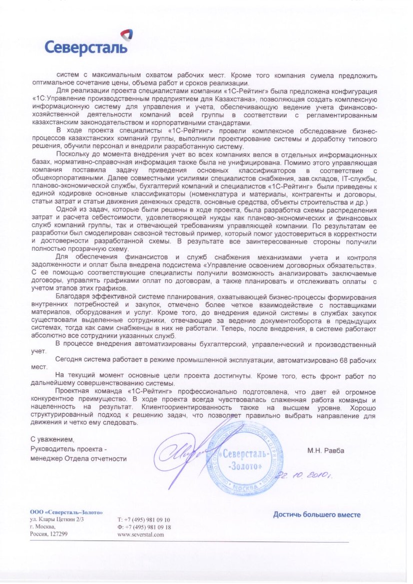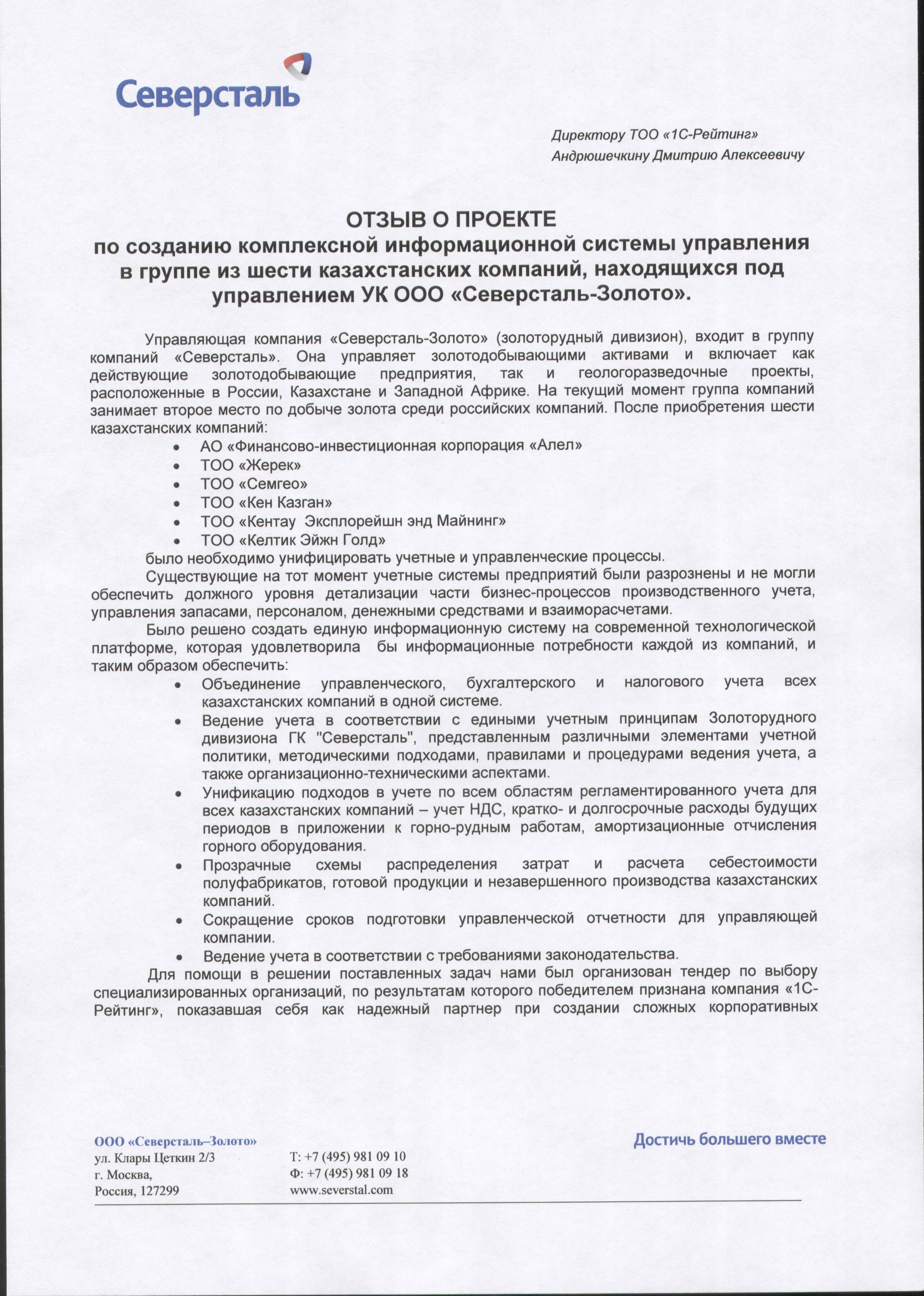 золотодобывающие предприятия, так и геологоразведочные проекты, расположенные в России, Казахстане и Западной Африке. На текущий момент группа компаний «Северсталь» занимает второе место по добыче золота среди российских компаний. После приобретения ею шести казахстанских компаний (трех производственных, двух обслуживающих и одной торговой) было необходимо унифицировать учетные и управленческие процессы.