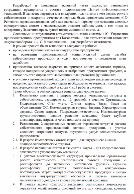 «Очевидно, что по сравнению с предыдущей версией программы, сервис стал значительно удобнее: универсальные отчёты, большое количество регистров, сервис работы с отборами данных в журналах, справочниках. Не могу сказать, что работы у кого-то уменьшилось (возможно, даже увеличилось), но то, что процесс учёта стал гораздо прозрачнее, более систематизирован и управляем — это однозначно. Плюс большие возможности по расширению функционала по сравнению с предыдущей версией программы. Относительно расчёта себестоимости могу отметить, что в рамках поставленной задачи (действующей методики) задача реализована в полном объёме. На мой взгляд, наиболее существенным и желаемым к улучшению параметром системы является время закрытия отчетного периода. С этой целью нами запланирован следующий этап проекта по внедрению методики РАУЗ (Расширенная аналитика учета затрат), которая позволит сократить время закрытия, благодаря применению системы линейных уравнений в расчете себестоимости. Мы надеемся на успешное развитие проекта и на дальнейшее плодотворное сотрудничество с компанией «1С-Рейтинг».
