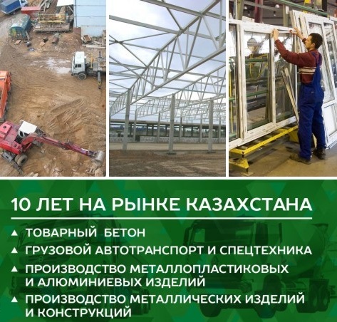 ТОО «Kaz Product Group» — многопрофильное предприятие, производит и реализует металлопластиковые изделия, алюминиевые конструкции и металлические изделия любой сложности, бетонные и строительные смеси, предоставляет услуги спецтехники, грузоподъемные механизмы, самосвалы, экскаваторы, бульдозеры.