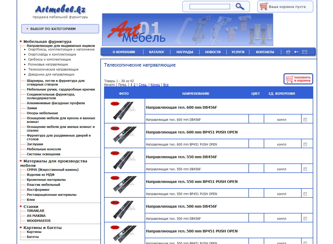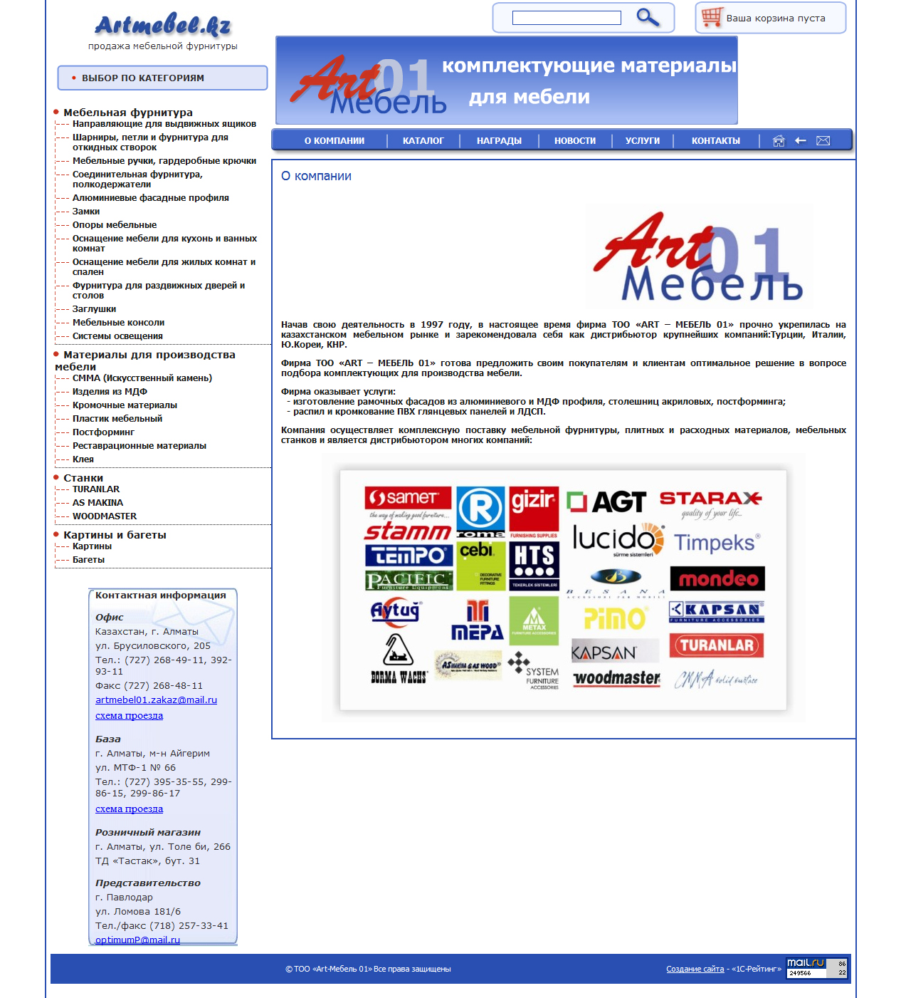 Завершен проект по созданию сайта ТОО «Art-Мебель 01», разработанного на базе программного продукта «1С-Битрикс: Управление сайтом» редакции «Малый бизнес».