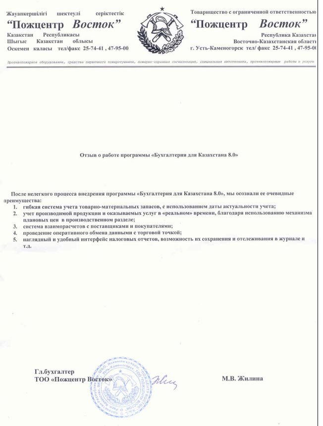Результаты внедрения оценивает Марина Васильевна Жилина, главный бухгалтер ТОО «Пожцентр Восток»: