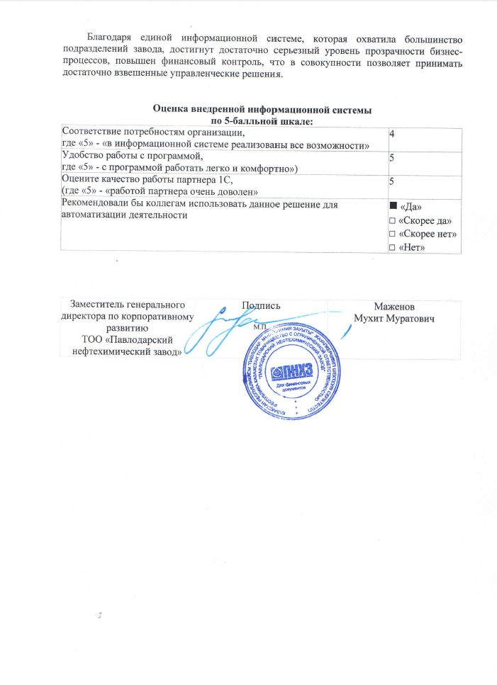 Заместитель генерального директора по корпоративному развитию Мухит Муратович Маженов так прокомментировал результаты внедрения: