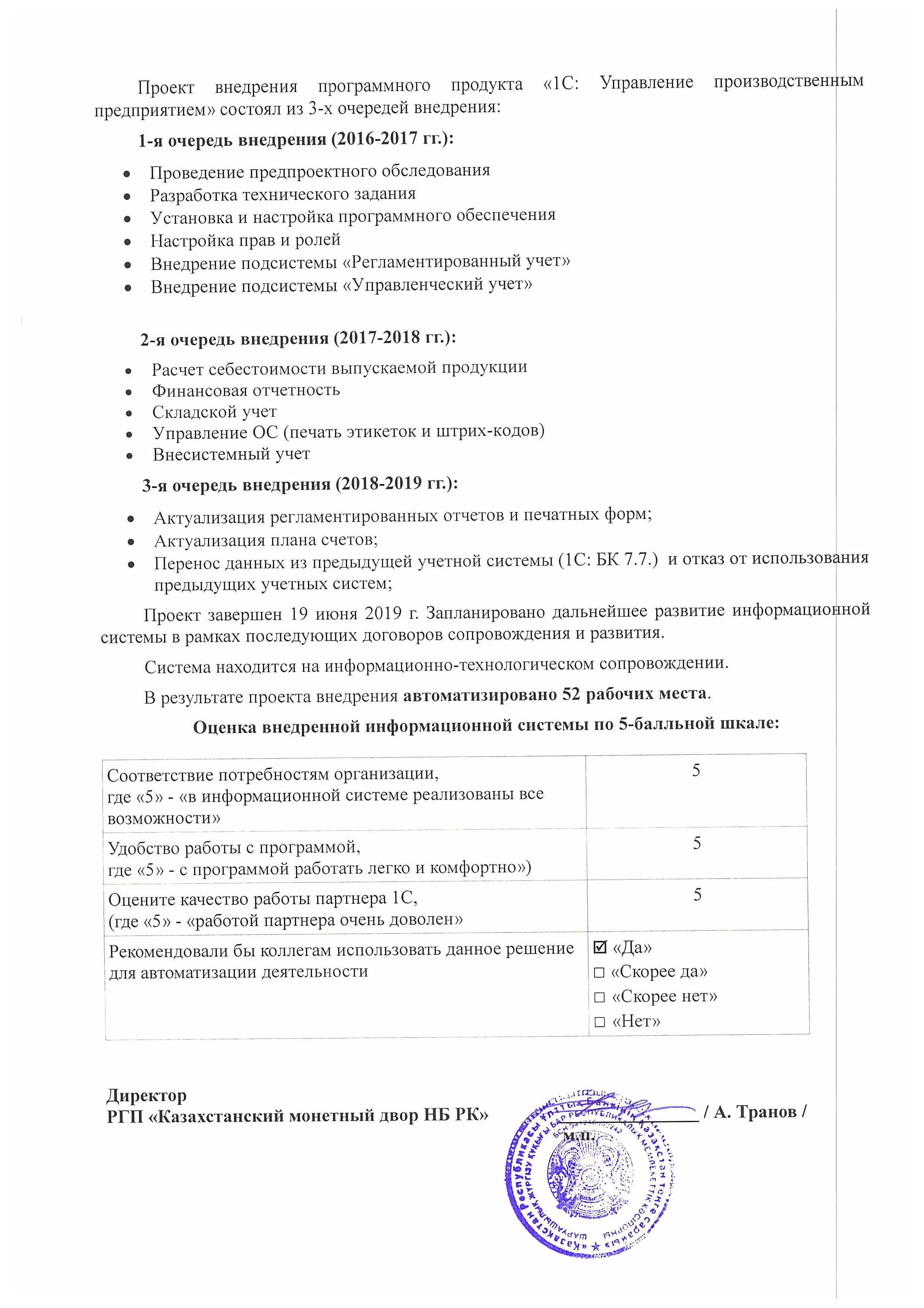 РГП «Казахстанский монетный двор НБ РК» автоматизировал управление производственным процессом с помощью «1С:Управление производственным предприятием для Казахстана».