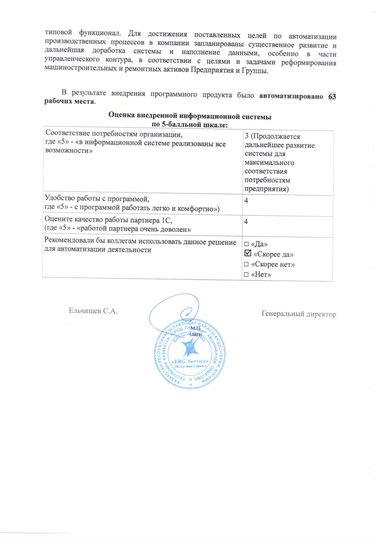 - Необходимость подготовки программного обеспечения Филиала для целей дальнейшего реформирования ремонтных и машиностроительных активов Группы на базе АО ERGService