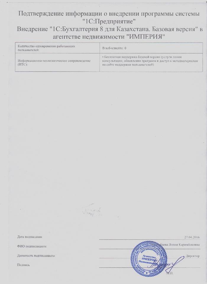 - Бесплатная поддержка базовой версии (услуги линии консультации; обновления программ и доступ к методматериалам на сайте поддержки пользователей)