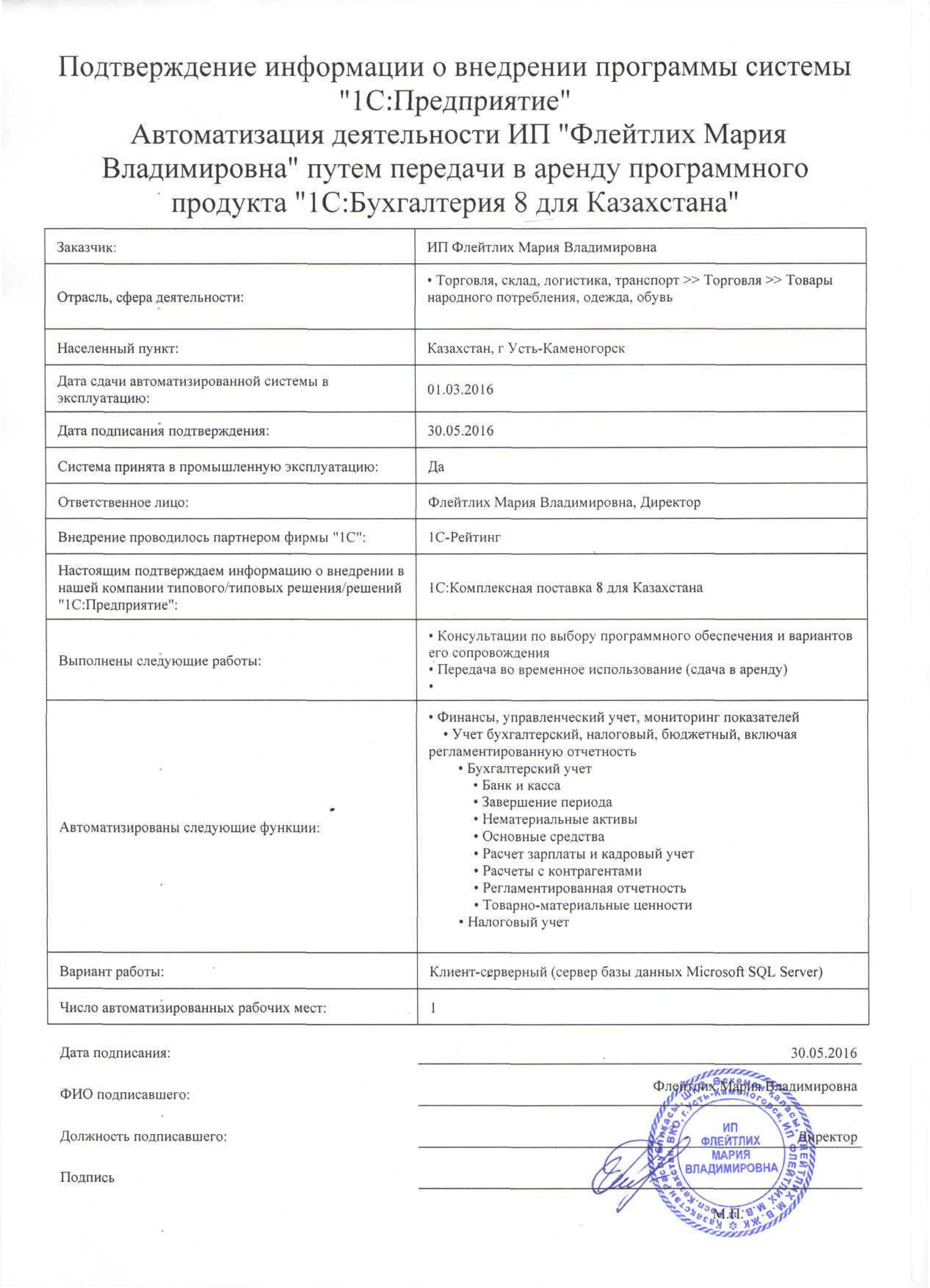 | Арендованное типовое решение: | 1С:Бухгалтерия 8 для Казахстана |