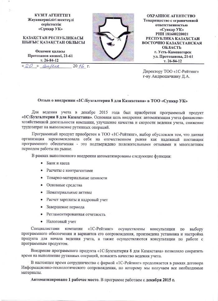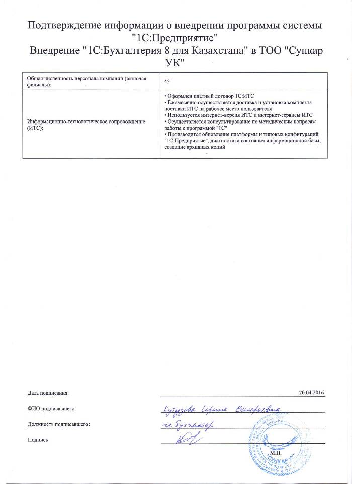 | Внедренное типовое решение: | 1С:Бухгалтерия 8 для Казахстана |
