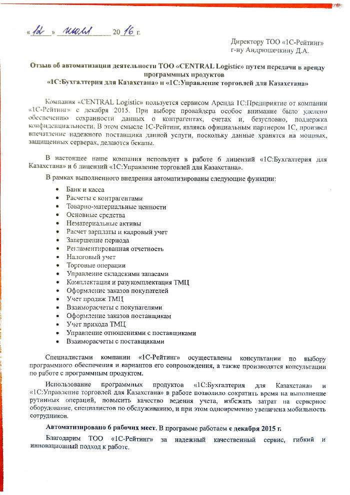 | Внедренное типовое решение: | 1С:Бухгалтерия 8 для Казахстан |