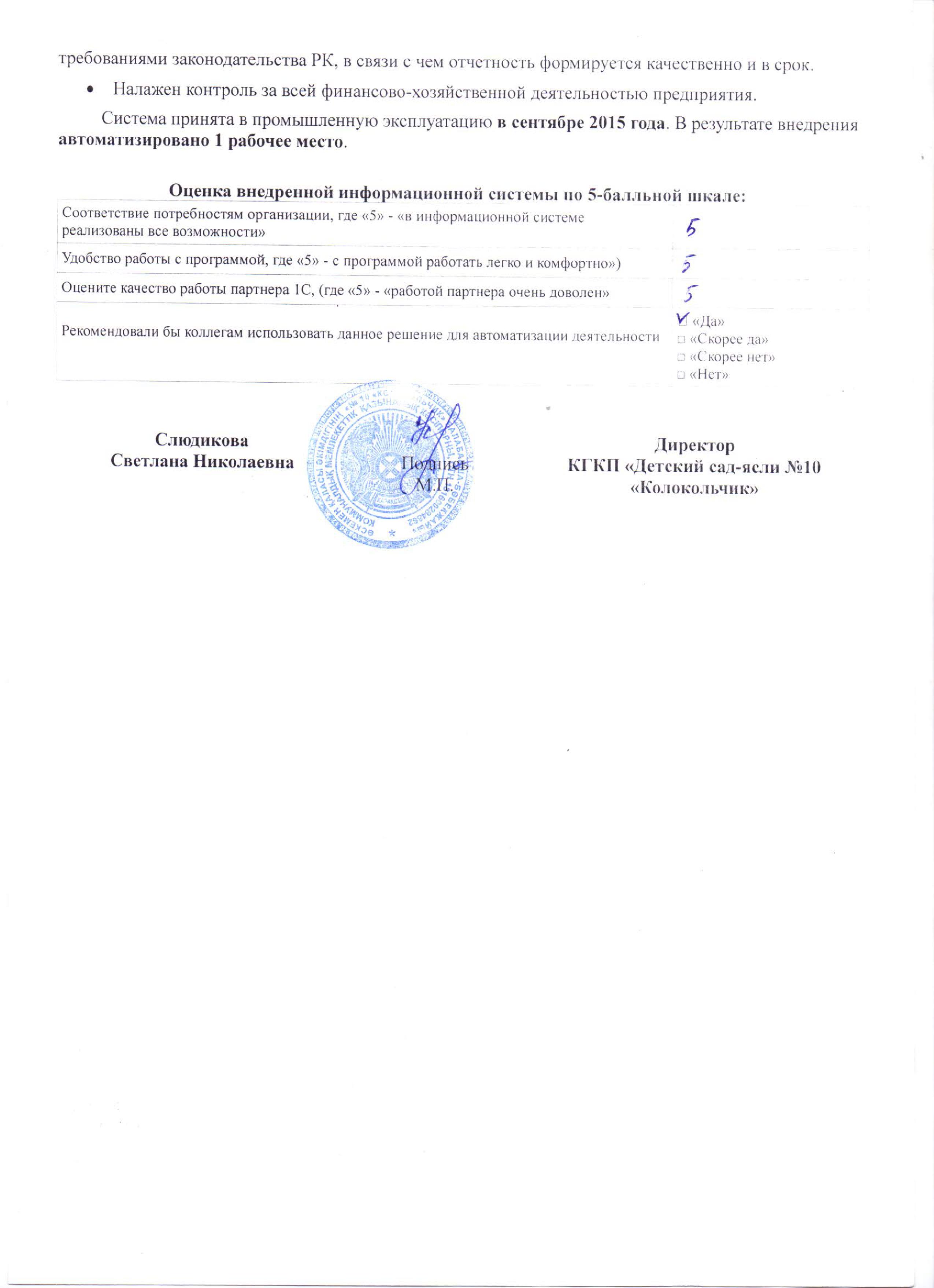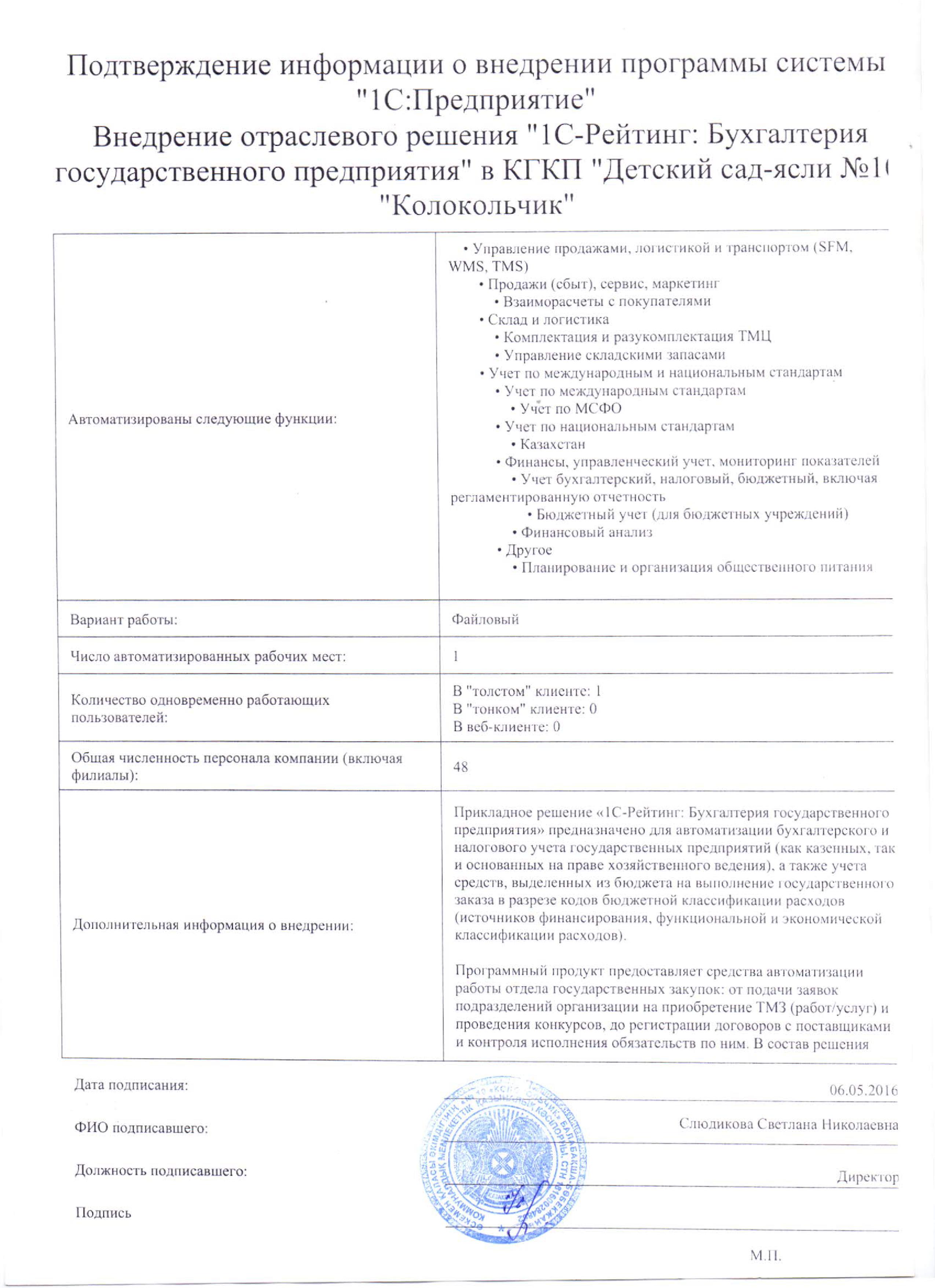 Общее число автоматизированных рабочих мест: 1