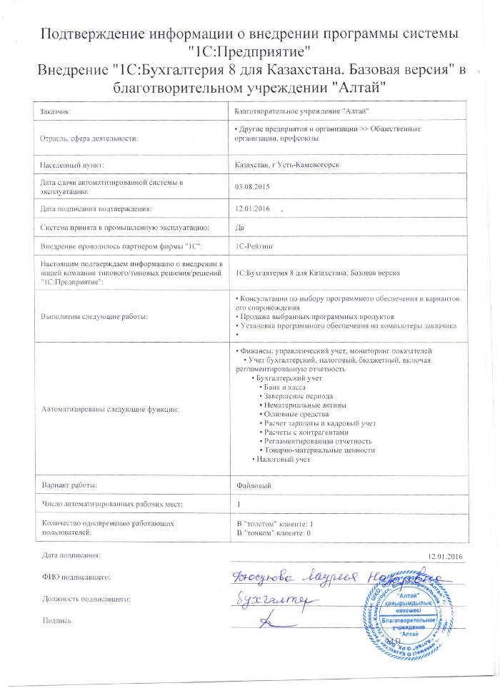 | Внедренное типовое решение: | 1С:Бухгалтерия 8 для Казахстана. Базовая версия |