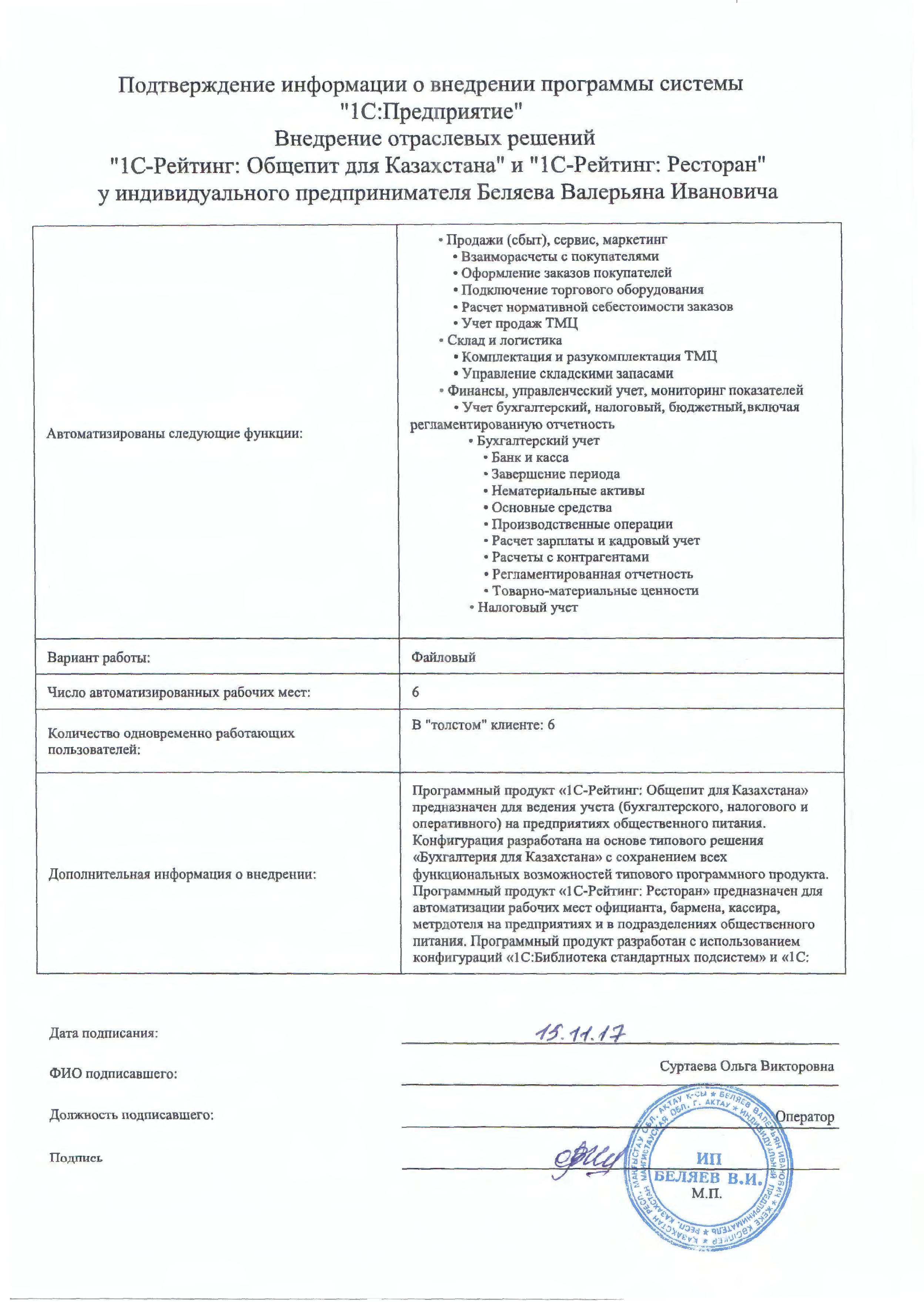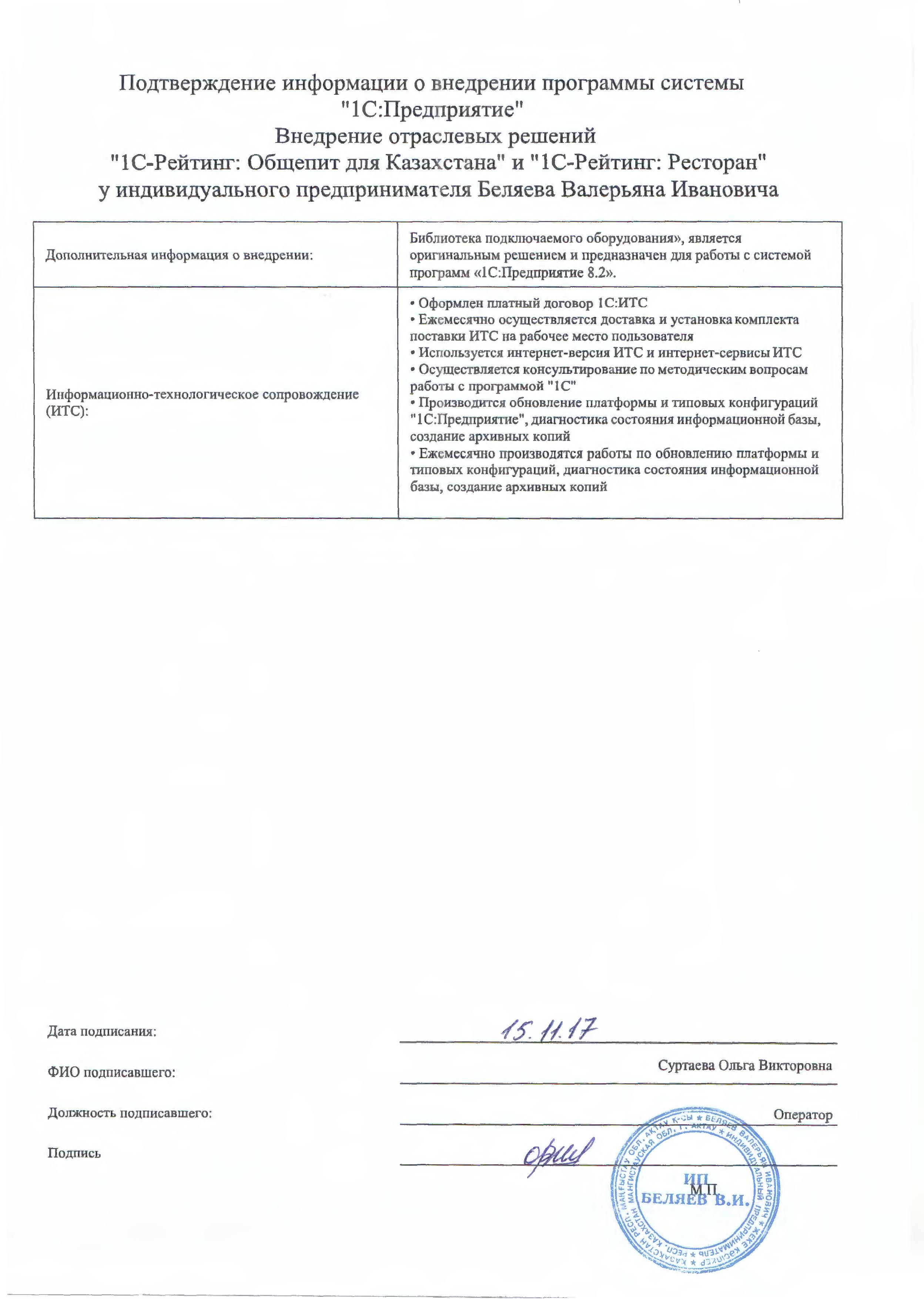 - Оформлен платный договор 1С:ИТС