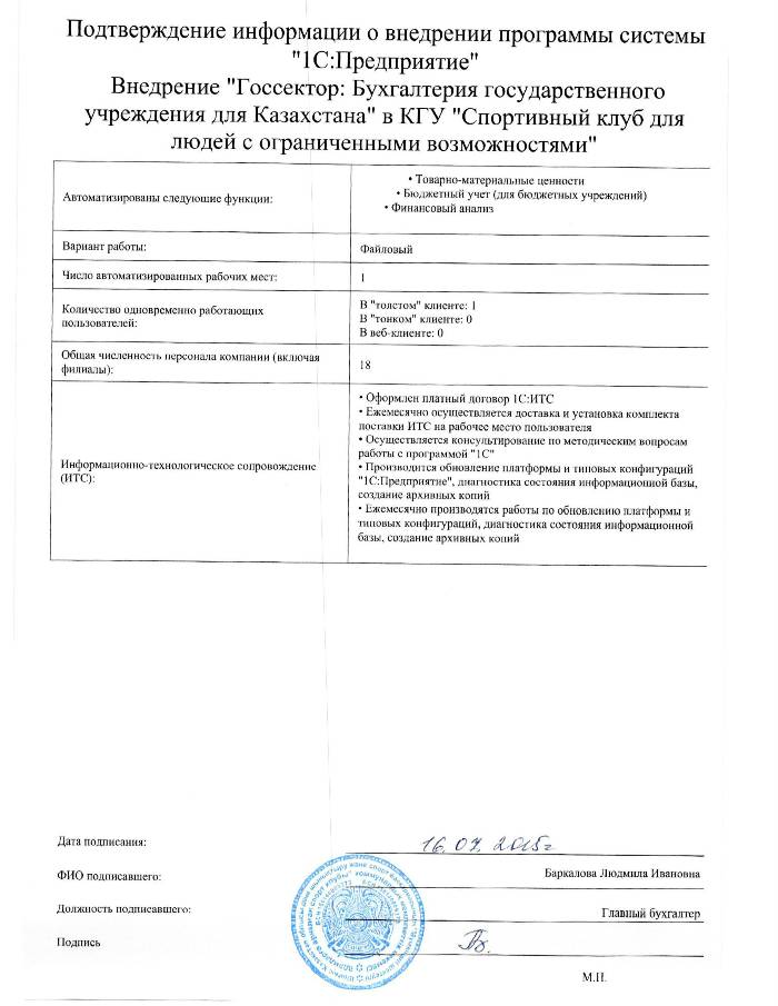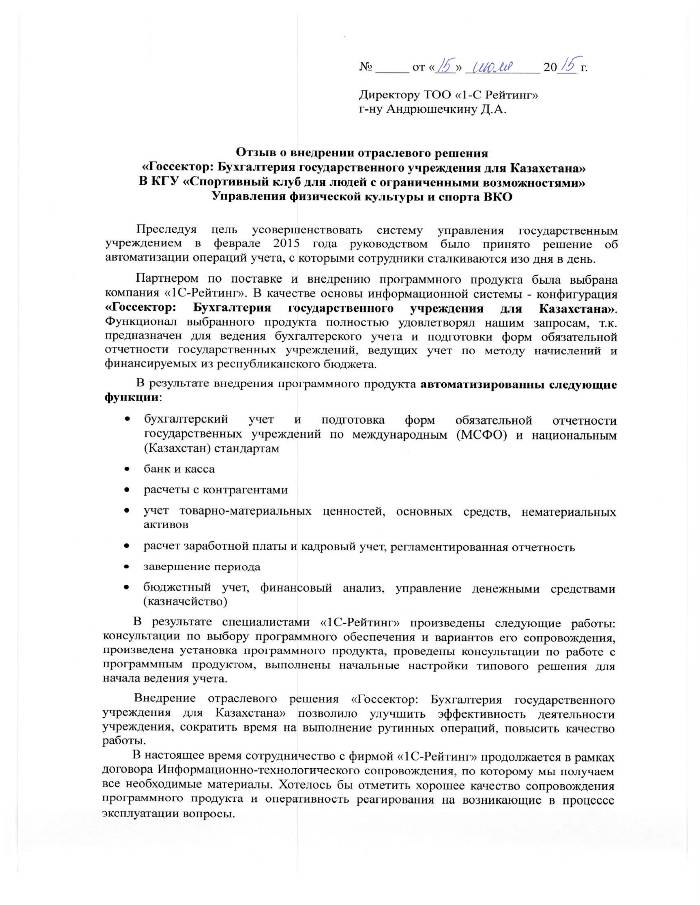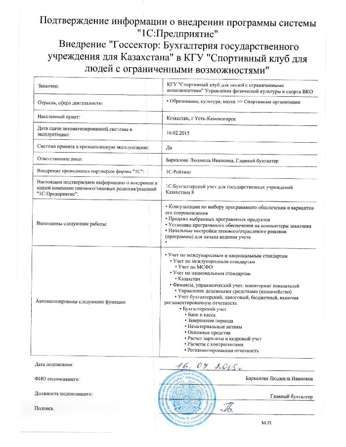 | Внедренное отраслевое решение: | Госсектор: Бухгалтерия государственного учреждения для Казахстана |