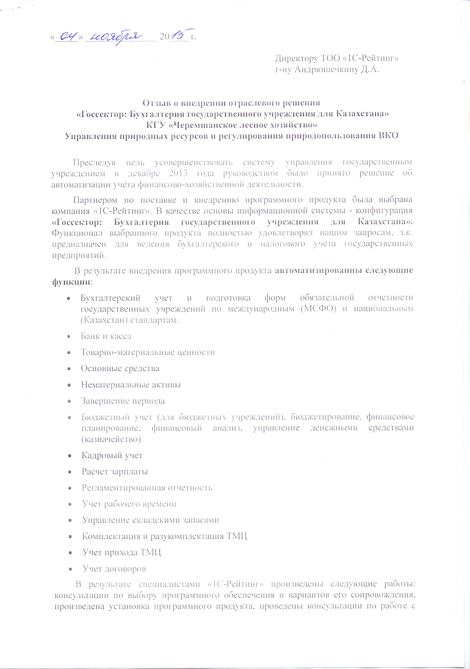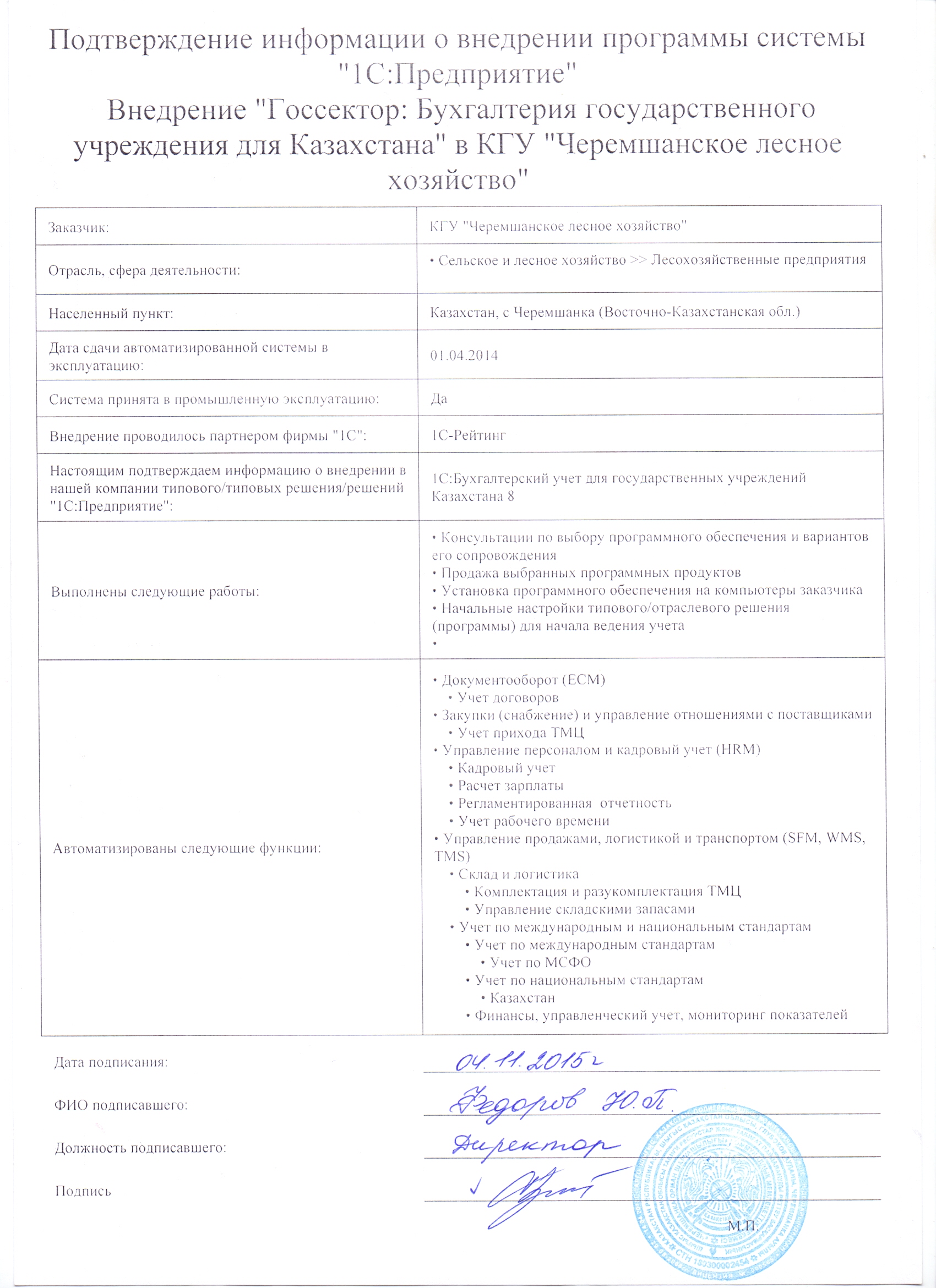| Внедренное отраслевое решение: | Госсектор: Бухгалтерия государственного учреждения для Казахстана |