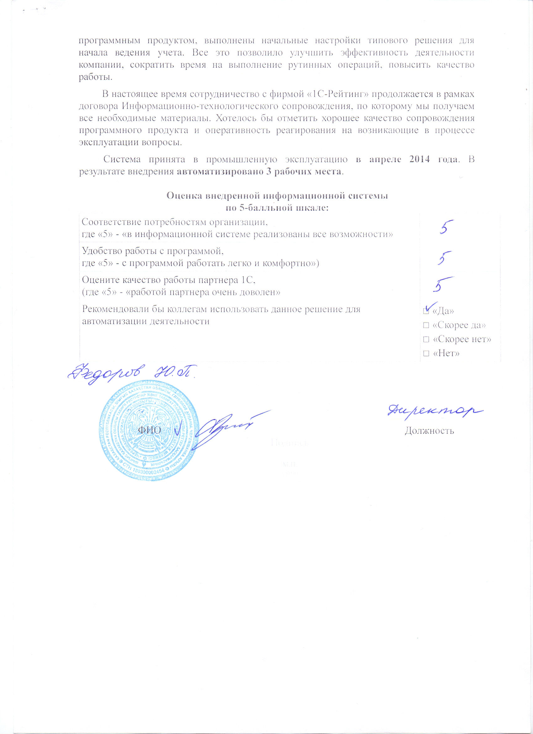 - Оформлен платный договор 1С:ИТС