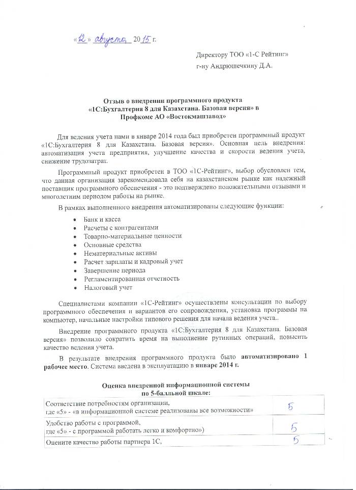 | Внедренное типовое решение: | 1С:Бухгалтерия 8 для Казахстана. Базовая версия |