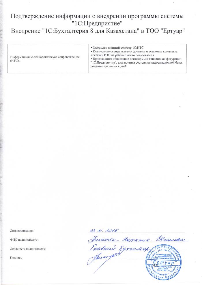 | Внедренное типовое решение: | 1С:Бухгалтерия 8 для Казахстана |