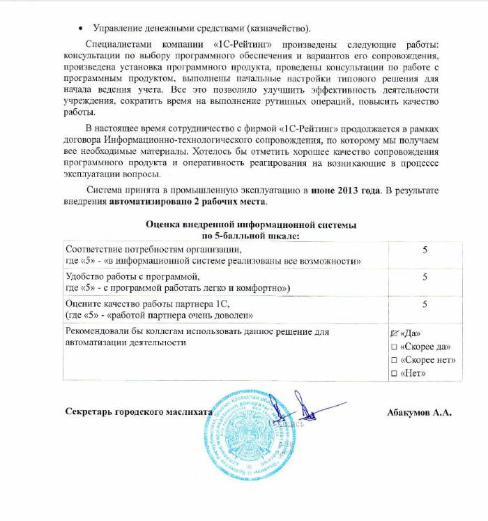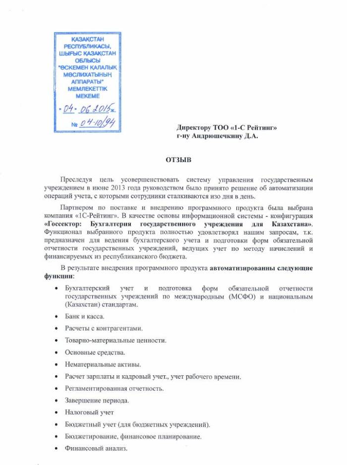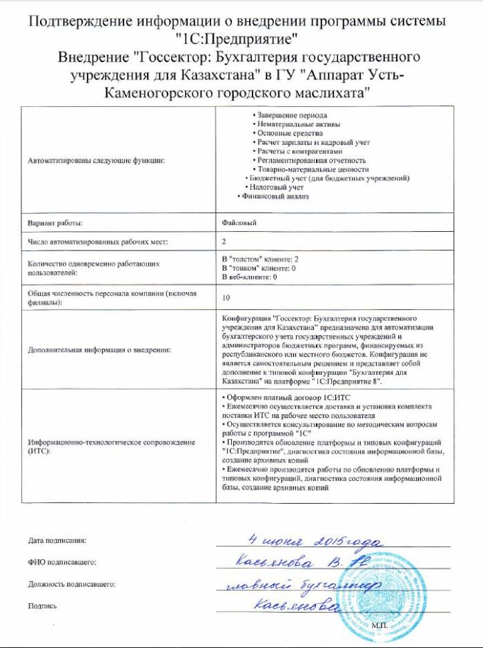| Внедренное отраслевое решение: | Госсектор: Бухгалтерия государственного учреждения для Казахстана |
