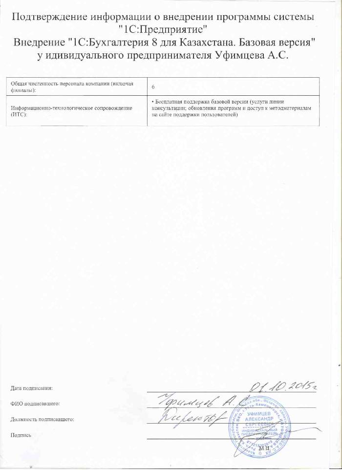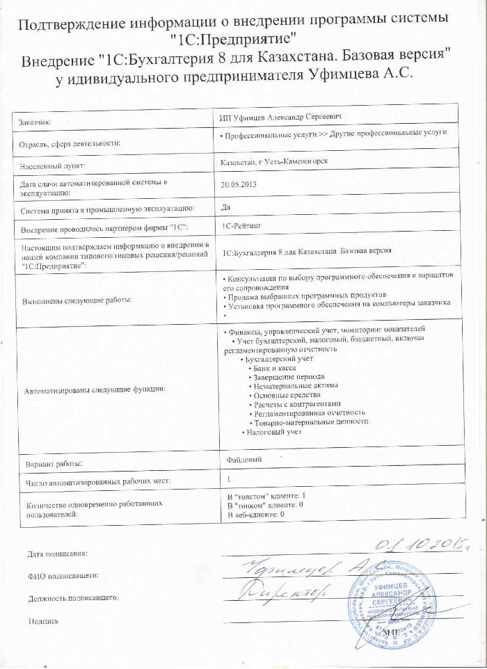 | Внедренное типовое решение: | 1С:Бухгалтерия 8 для Казахстана. Базовая версия |